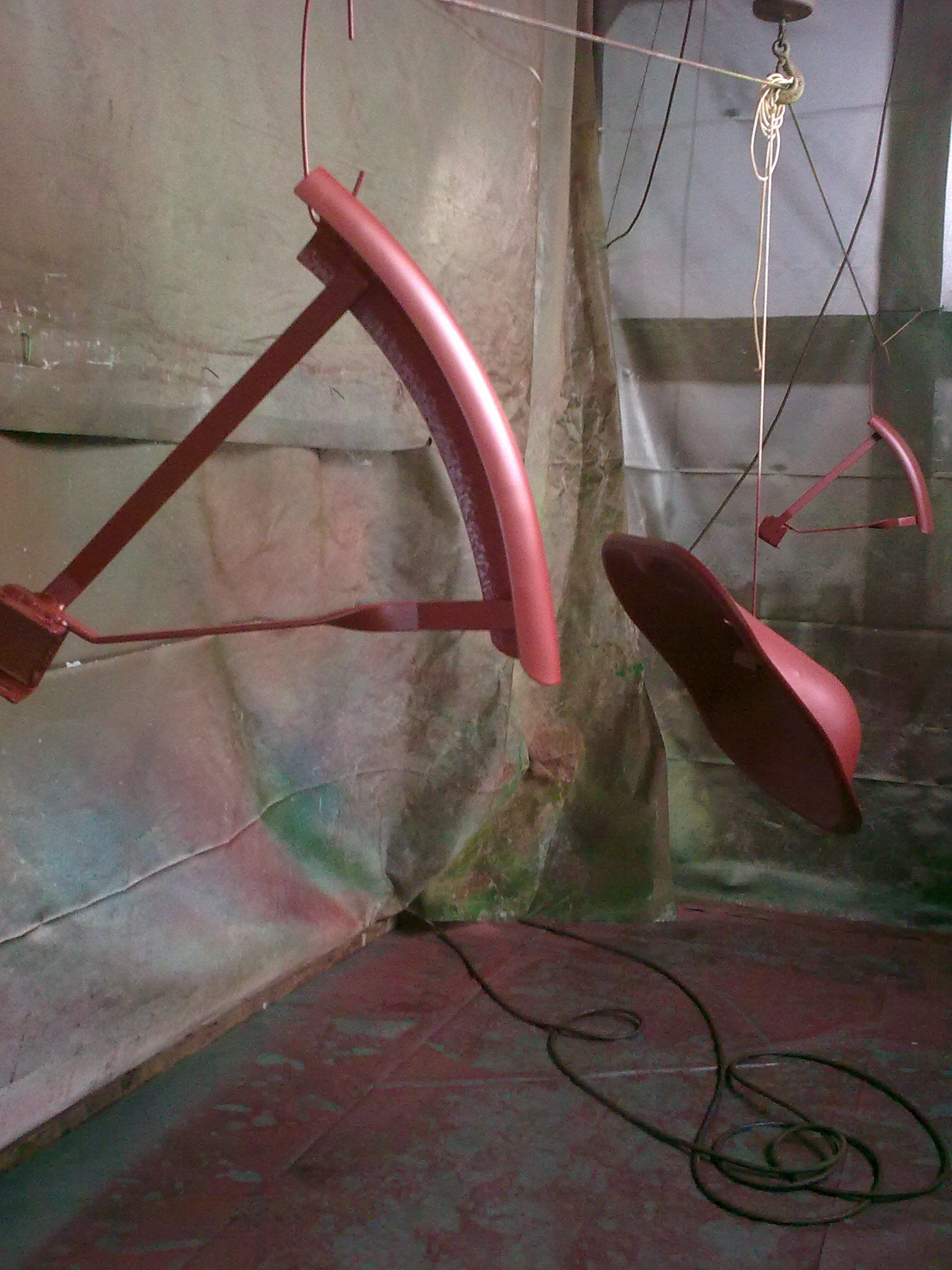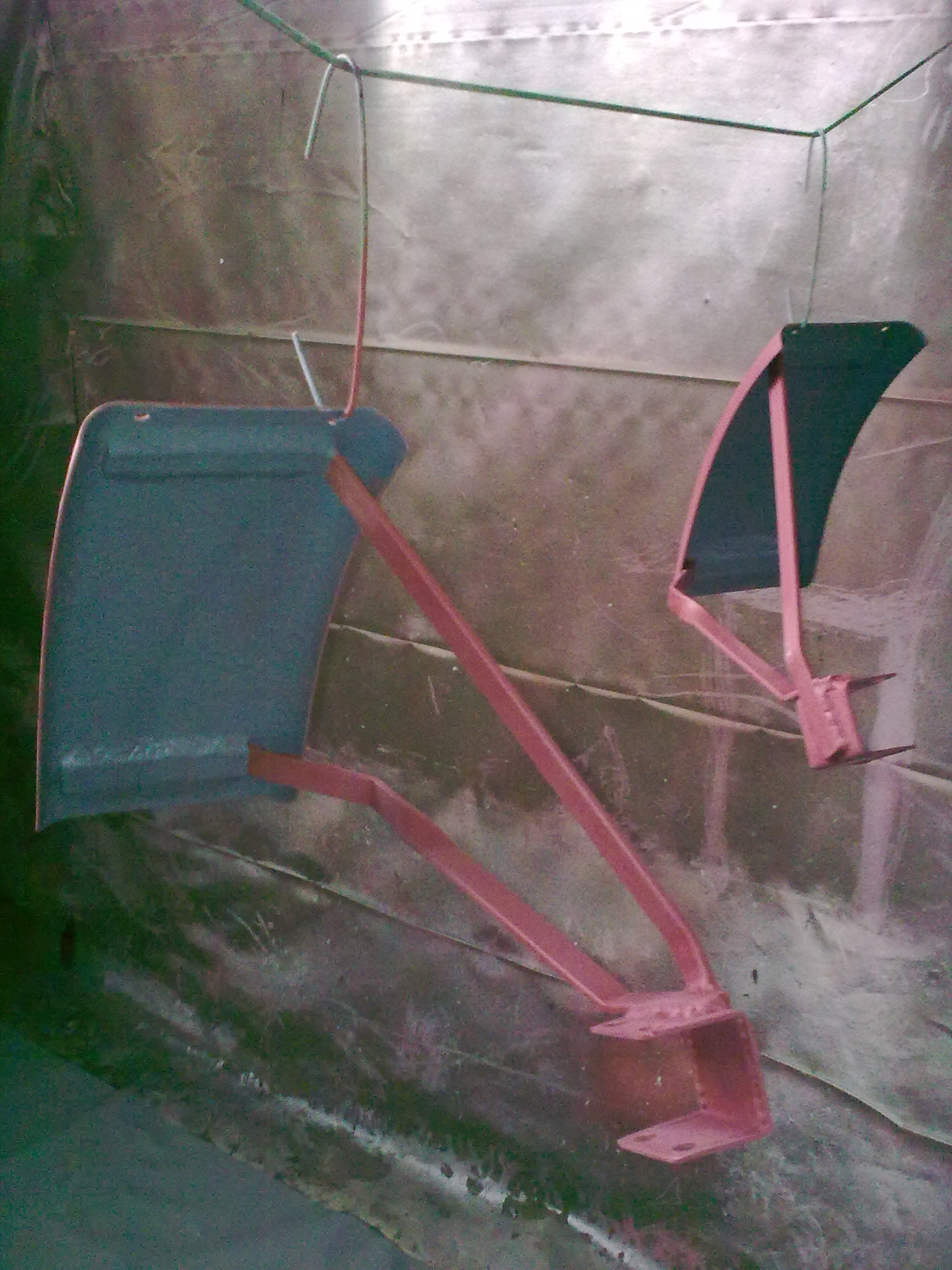 Vorderradkotflügel im Trocknungsraum, 16 Arbeitsstunden und 150 Euro später. Natürlich werden nach vollständiger Trocknung des Lack noch die authentischen ATÜ- Beschriftungen angebracht.