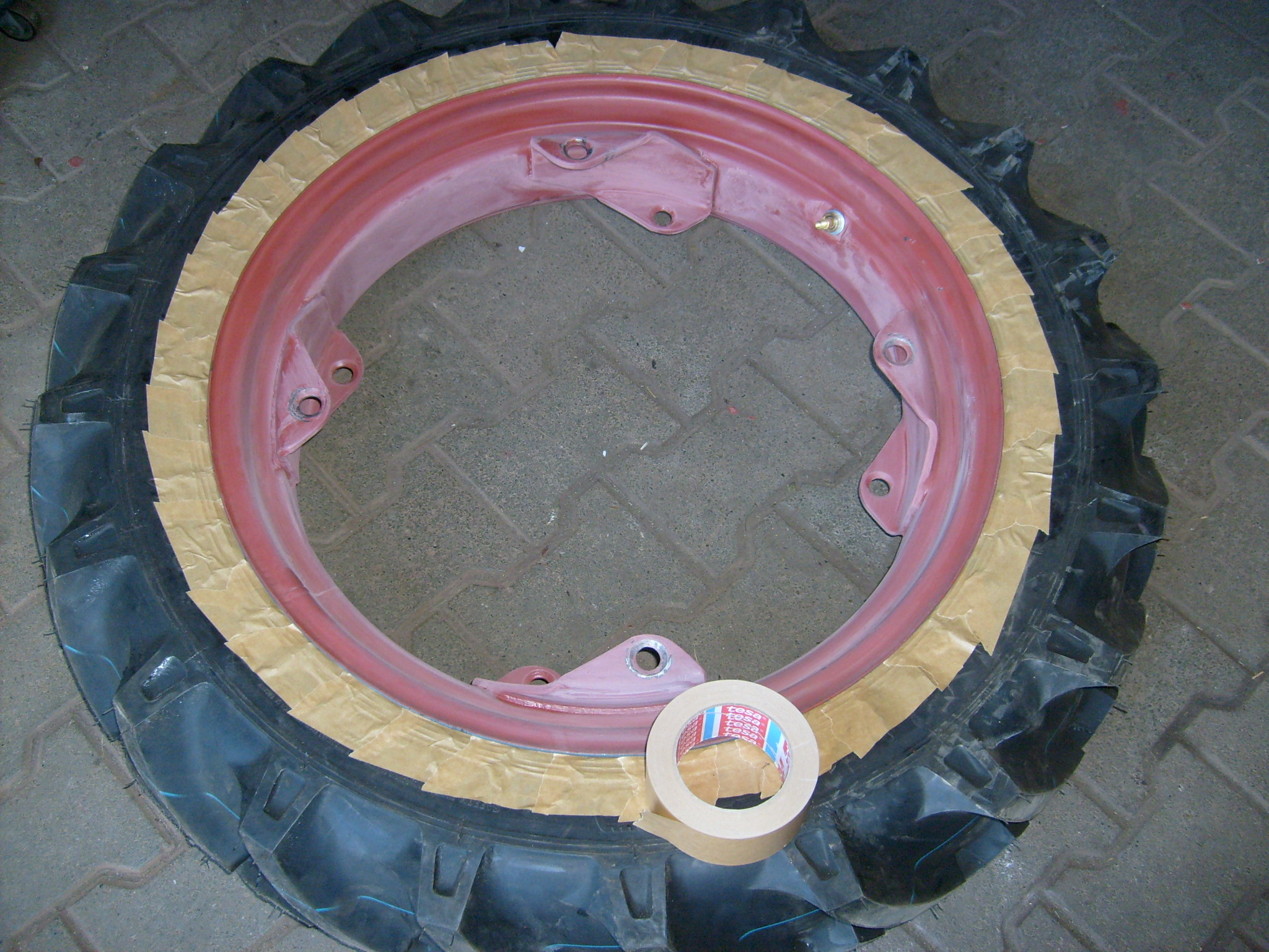 Zum abkleben wurde die Luft aus den Reifen gelassen. So konnte die Reifenflanke ein wenig nach unten gedrückt werden, um Klebeband drunter zu schieben...