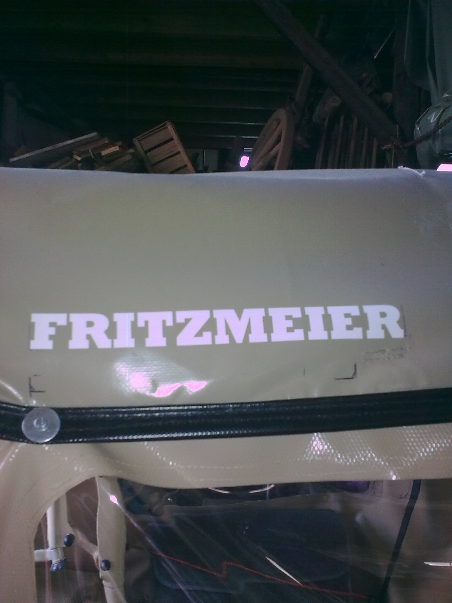 Fritzmeier Beschriftung an der Dachplane. Vor der Anbringung wie auch an den Lackoberflächen diese mit Silikonentferner reinigen. Bei den lackierten Flächen nur vorsichtig drüberwischen, damit sich der Lack nicht anlöst und matt wird.