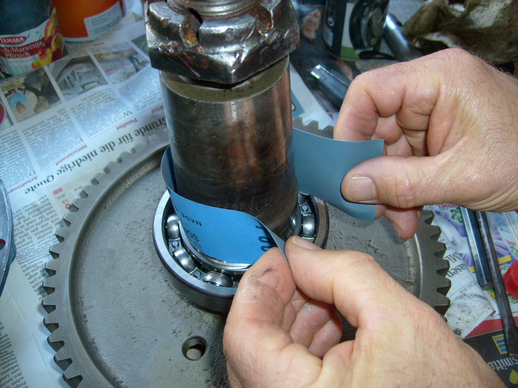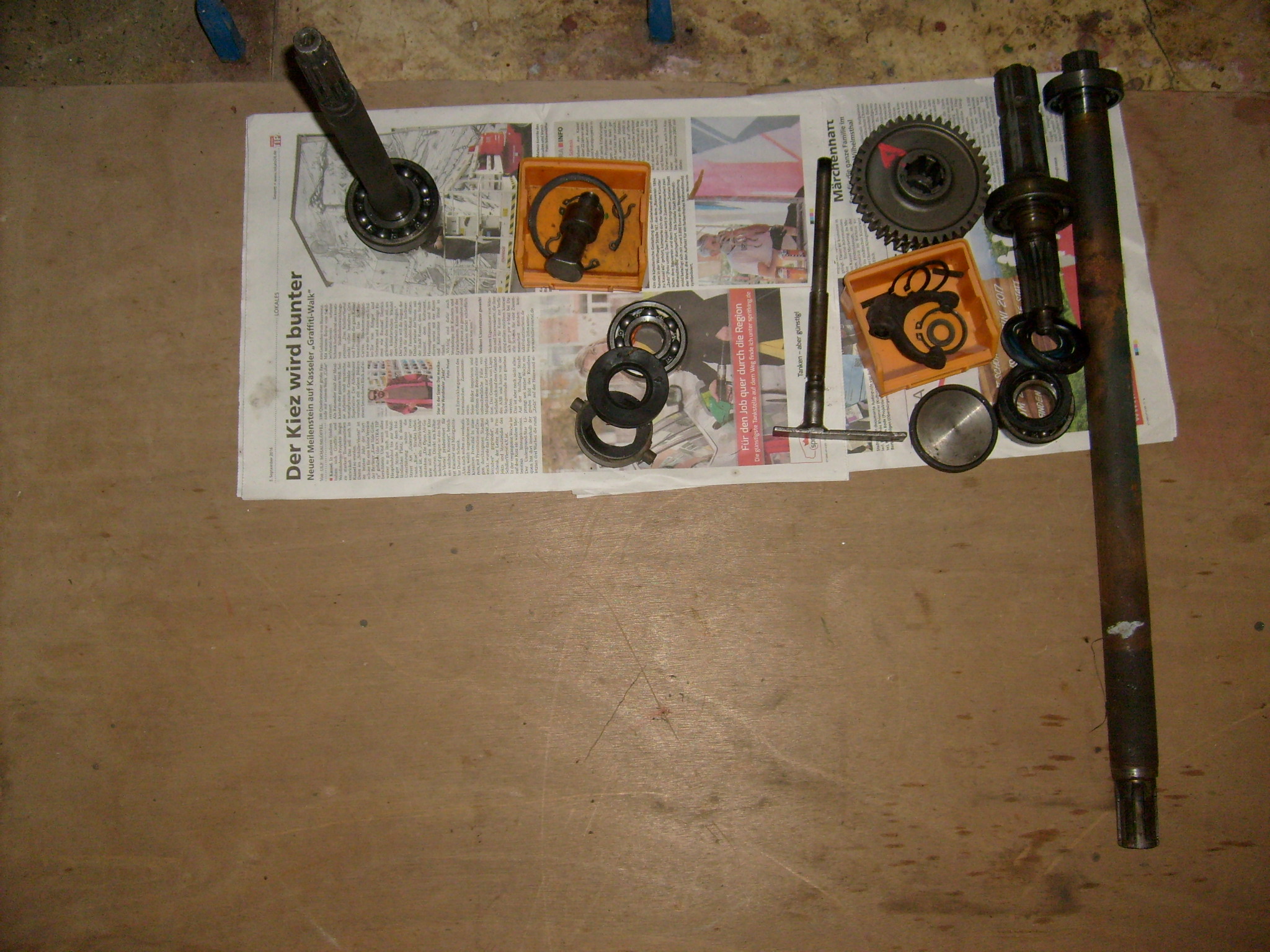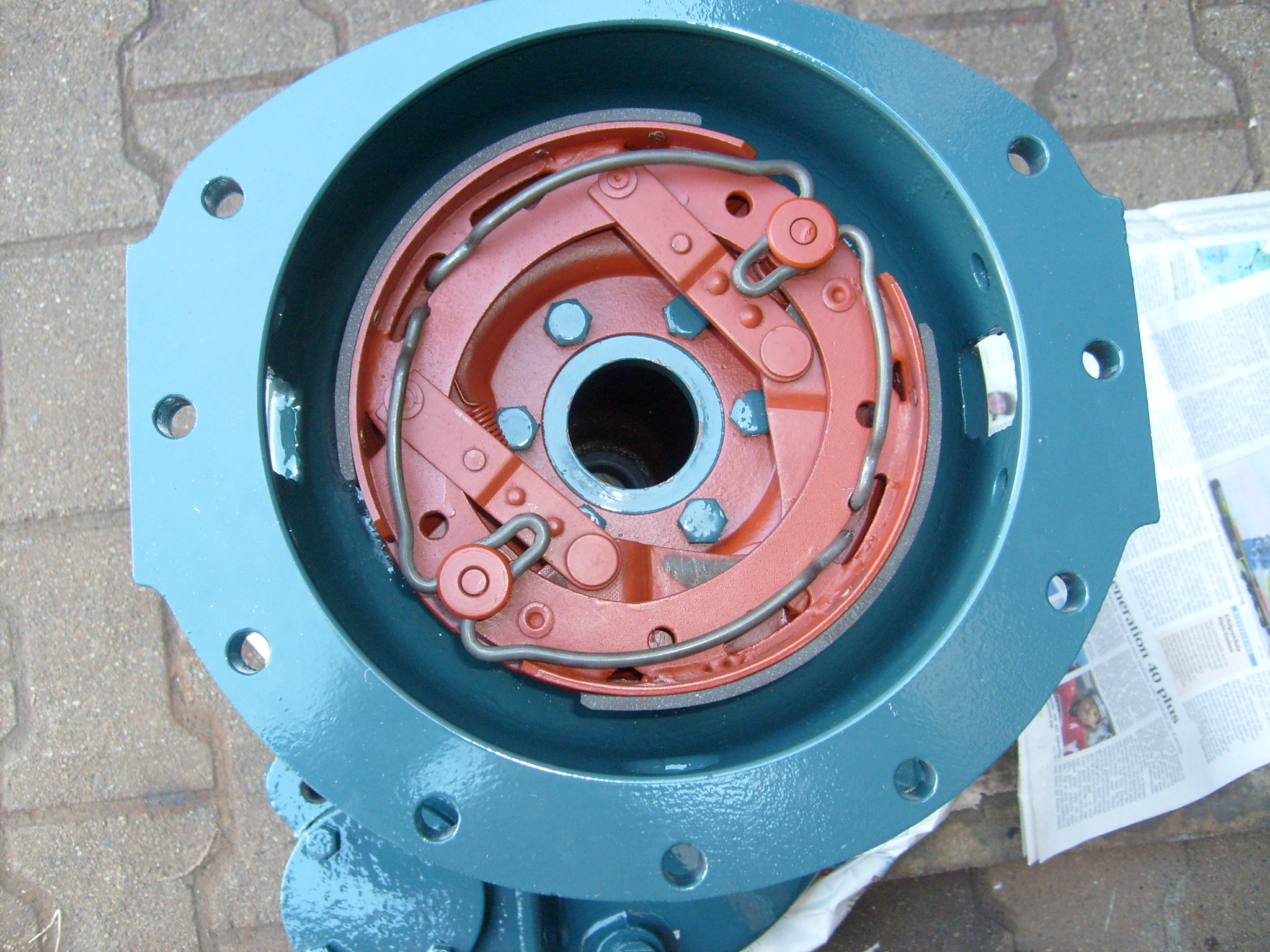 Zwei der alten waren gebrochen und haben zu zwei beschädigten Bremstrommeln geführt, die gerade in einer Dreherei sind. Dabei werden jeweils erst die langen Seiten der Bügelfedern in den jeweiligen Bremsbelag eingehängt, danach wird mit einem Bindfaden oder einem anderen dünnen Seil die kurze Seite der Bügelfeder soweit nach oben gezogen, dass eine zweite Person die Bügelfeder mit einer Wasserpumpenzange über den Bremsbelag schwenken kann in den sie eingehängt werden soll. Ist die Endstellung erreicht braucht die Person mit dem Faden den Faden nur loslassen, die Feder gleitet in die Aussparung des Bremsbelag.
