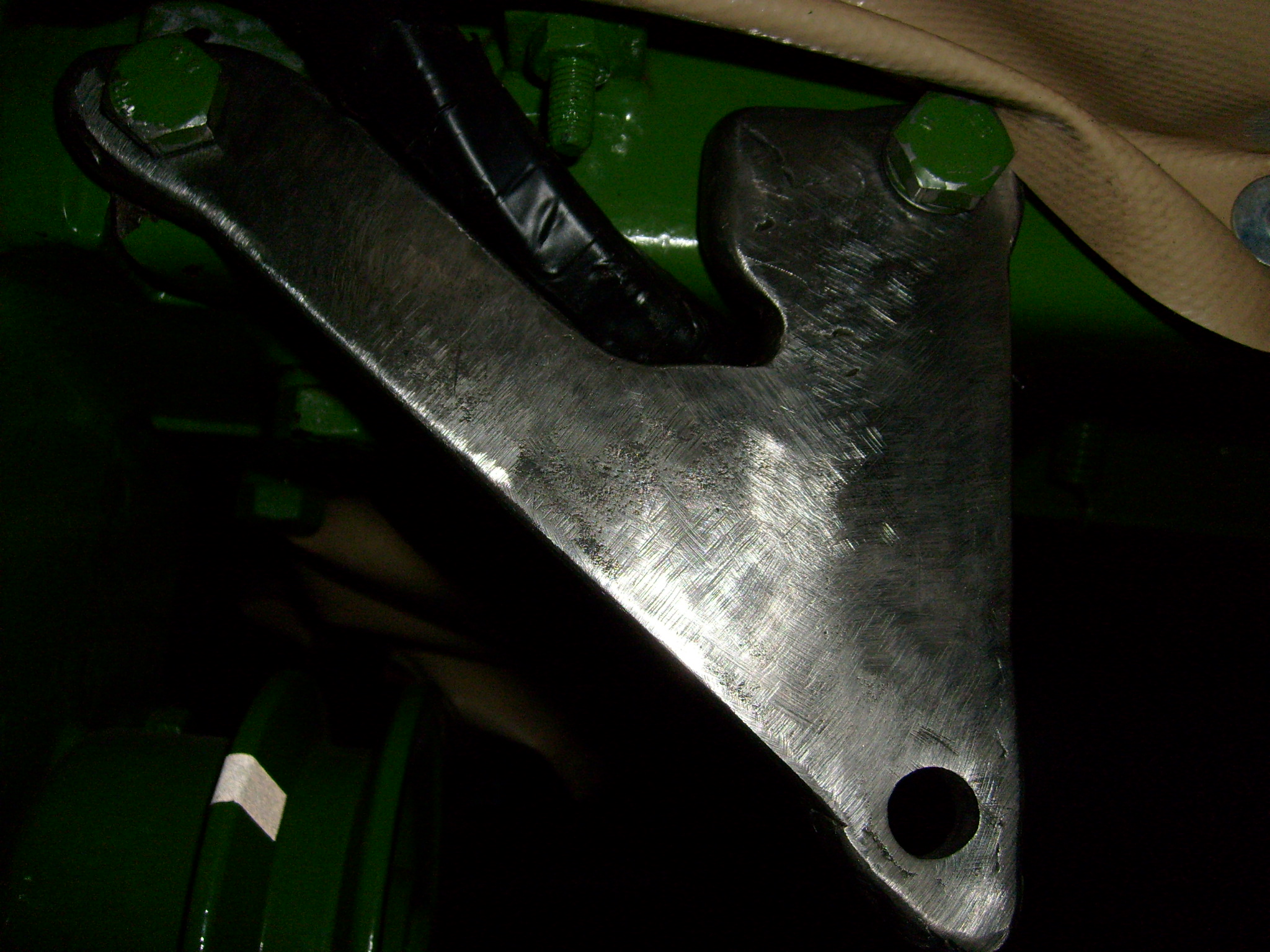 Die drei dicken Bolzen werden mit Splinten in den Bauteilen befestigt, damit sie im Betrieb nicht mehr herausrutschen können. Das heißt das in den Bauteilen jeweils deckungsgleiche Bohrungen sind, die mit der Bohrung im Bolzen fluchten. Hier muss es mal eine Änderung bei Lanz gegeben haben. Der Bolzen, der den Mähwerk Antrieb mit dem Mähwerk Tragrahmen verbindet, wird zwar bei diesem Mähwerk mit Splint befestigt, aber nicht beim Bulli Mähwerk. Dort ist der Bolzen länger und wird am Ende mit einer Bohrung und Federstecker vor dem herausrutschen gesichert. Vermutlich war das sehr eng mit dem rotierenden Messerantrieb, der an dieser Stelle genau gegenüber liegt. Mit der Splint Befestigung, wie es jetzt bei diesem Mähwerk ist, hat man rund 2 cm mehr Luft. Wenn alles fertig montiert ist stelle ich mal zwei Vergleichbilder ein.