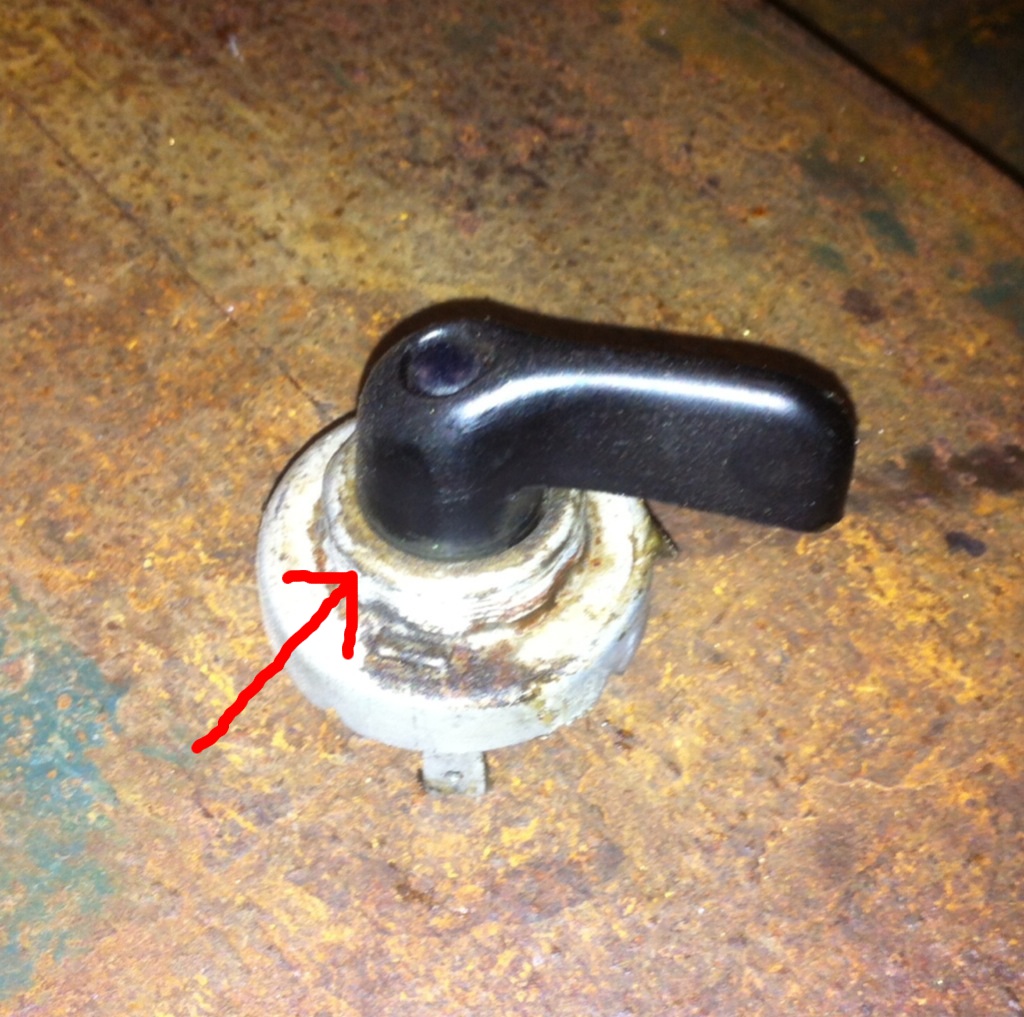 ...das was wie eine Mutter aussieht, ist das Gewinde. Die Mutter, womit der Schalter in der Armatur gehalten wird, ist bereits abgeschraubt.
