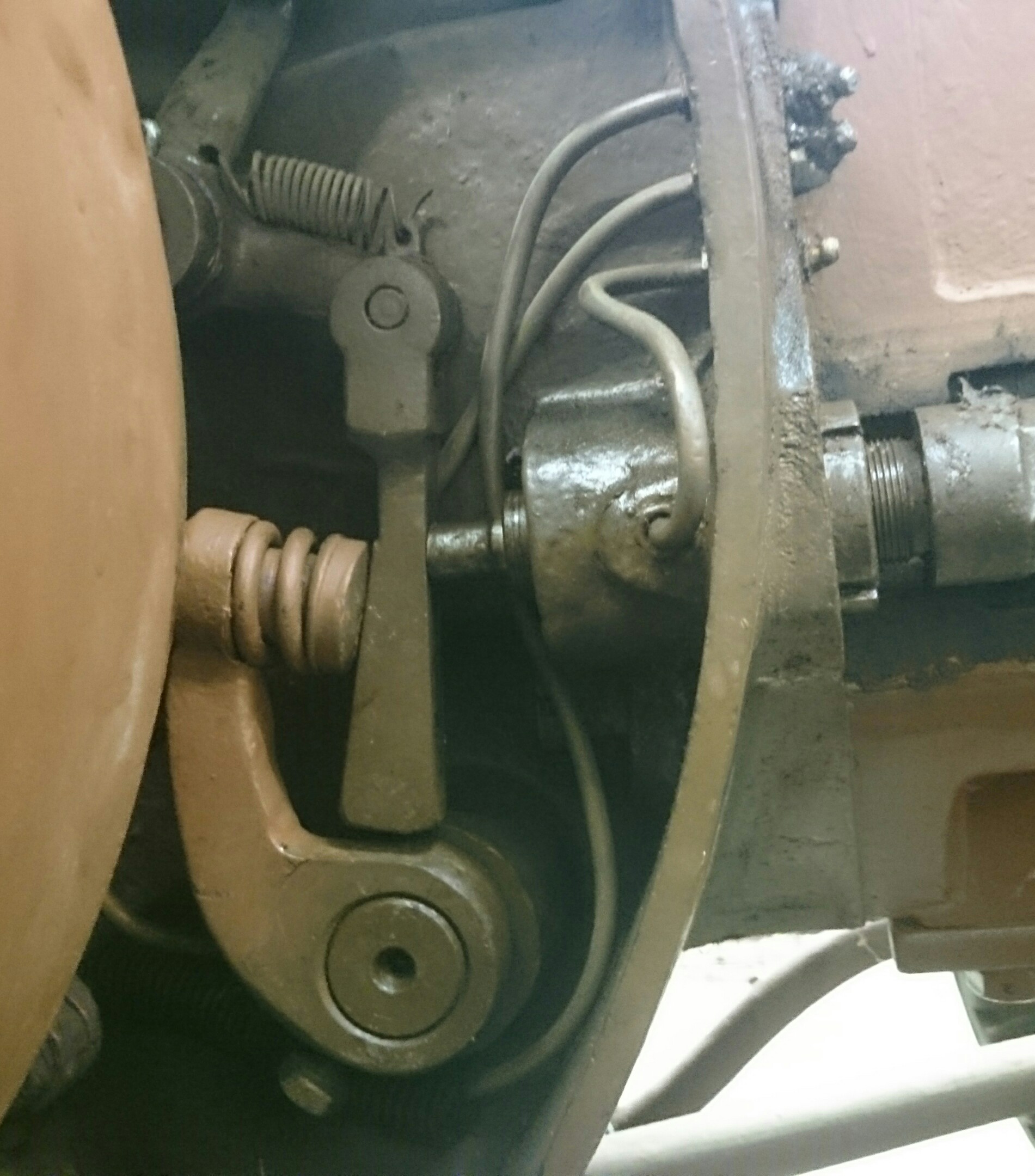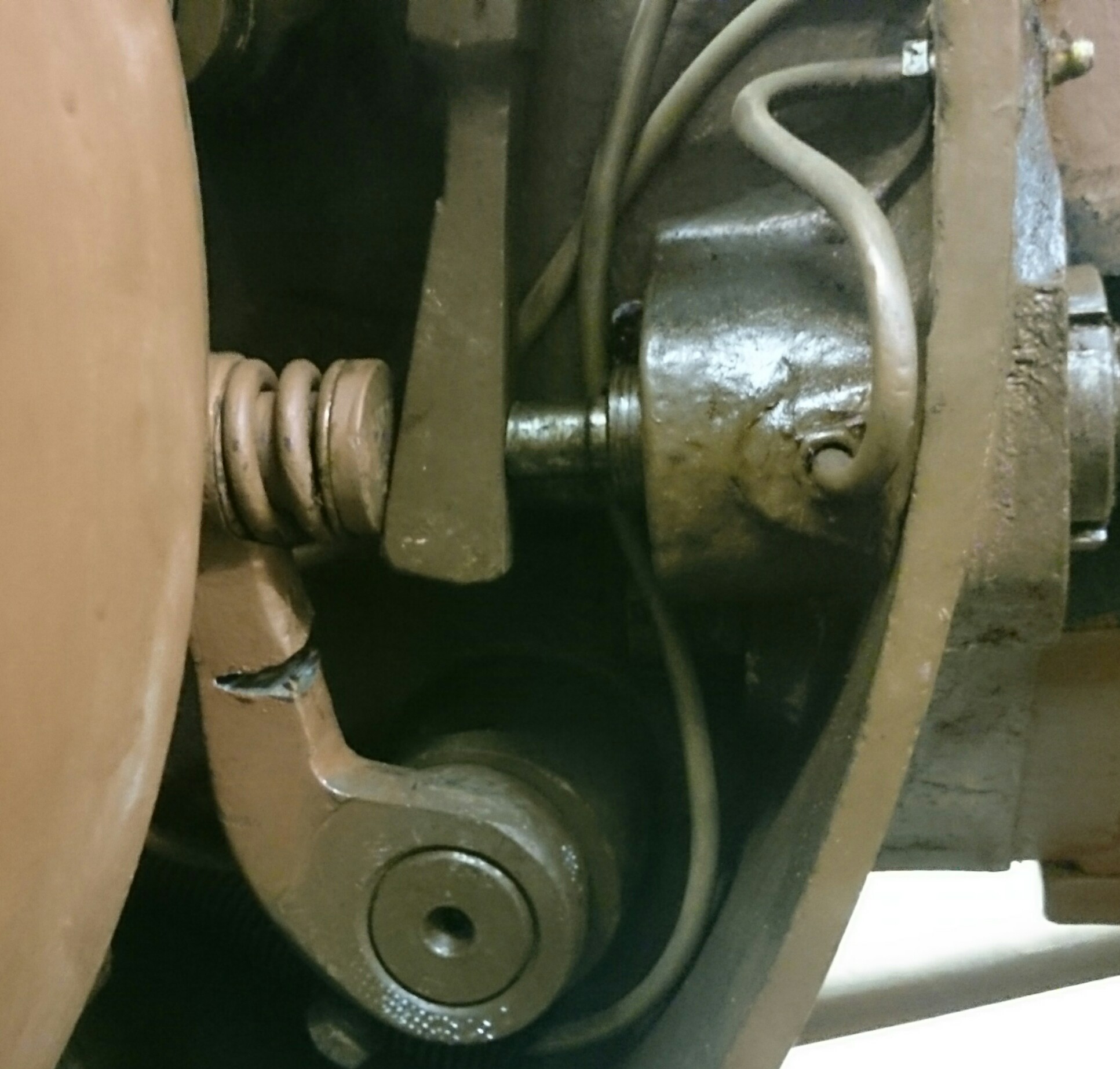 Wo die Rückzugfeder am Gestängekreuz eingehängt ist scheint kaum noch Material vorhanden,sodaß diese Bohrung wohl bald ausreißt.
