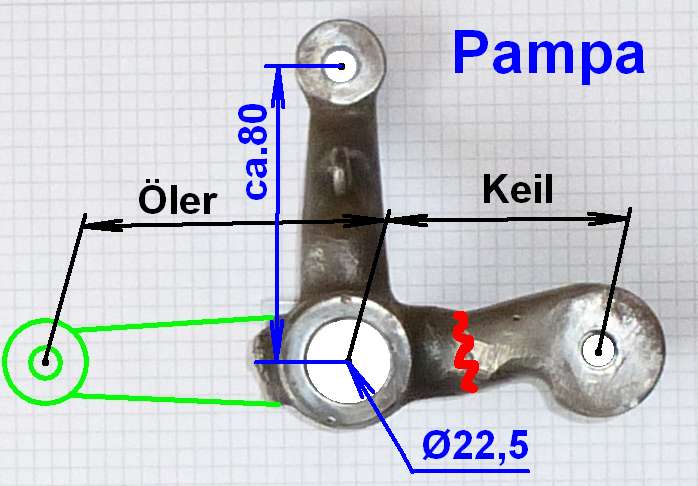 für die Keil-Ölregulierung. Wie auf dem Bild ersichtlich, fehlt der Arm zum Öler