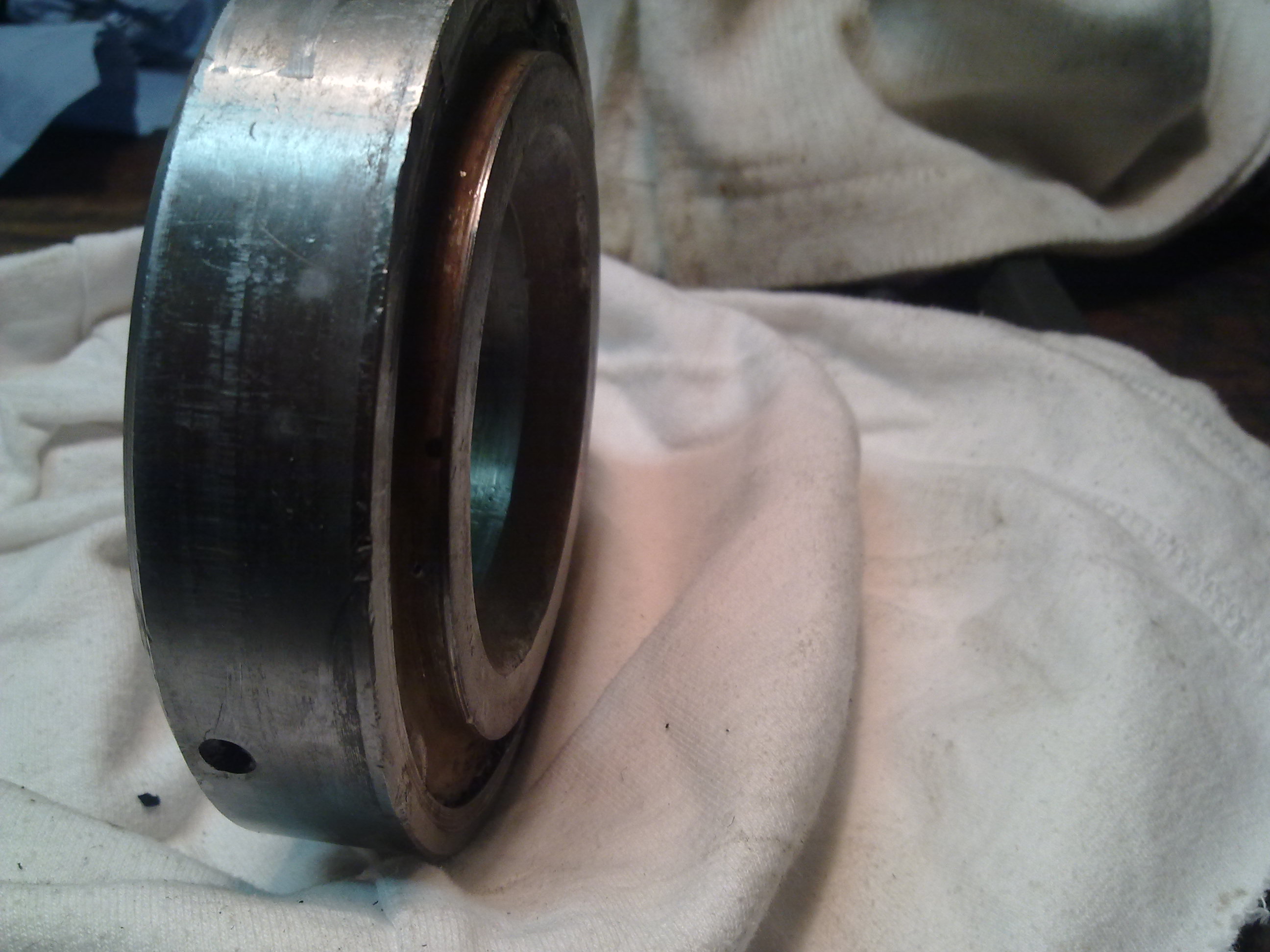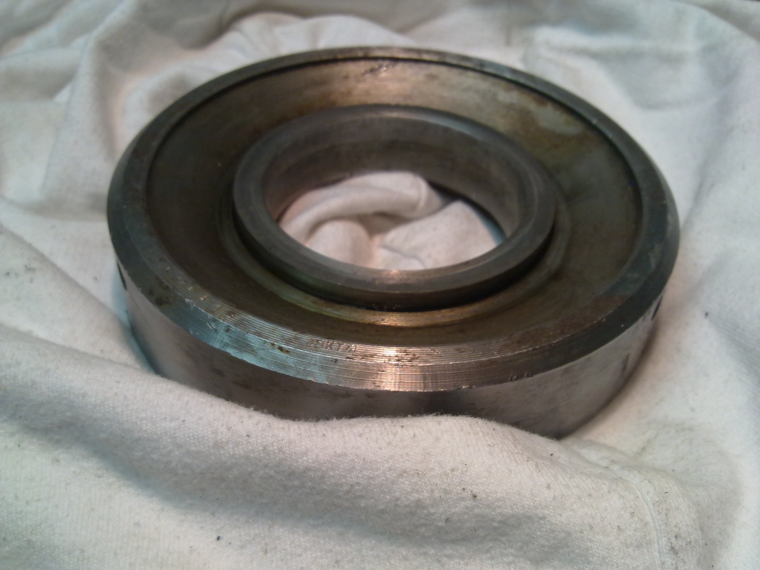 ich bin gerade dabei meine Vorderachse zu überholen. Ich habe das große Schrägrollenlager zusammen mit der Labyrinthscheibe mittels der Radbolzen runter gedrückt. Jetzt meine Frage, ist die Labyrinthscheibe noch okay.Ehrlich gesagt, hatte ich mit so einem Teil noch nie das Vergnügen und würde gern mal wissen, ob die Scheibe noch ganz ist. Zumindest lässt sie sich verdammt schwer drehen. Das heißt, Innenring im Schraubstock und Außenring nur mit großer Zange.... Ich habe mal nen paar Fotos gemacht: