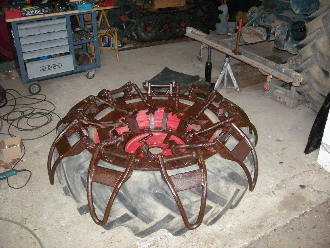 Im Anhang mal ein Bild von der Montage solcher Greifer, hier allerding am D 3606. Der hat ja noch zusätzlich eine Zwischenplatte zum kleinen Flansch der Antriebswelle. Das Lochbild der Felge ist aber gleich zu dem der GK-Bulldogs.