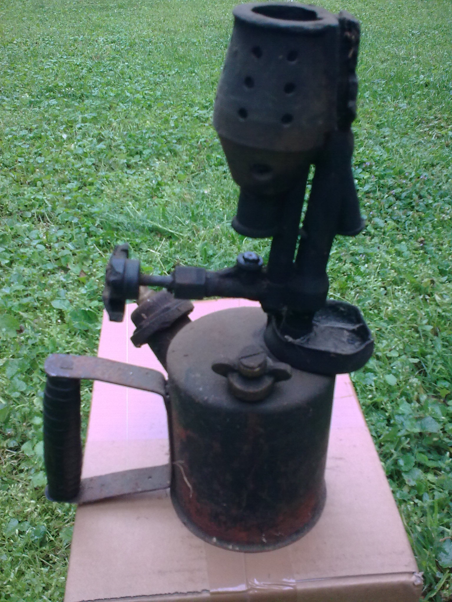 Die Heizlampe lasse ich definitiv im Patina Zustand. Ich habe vergessen zu erwähnen, dass der Holzgriff auch teilweise abgebrochen ist. Man sieht einen Teil der inneren Metallstange. Das Typenschild auf dem Handgriff "Lanz33" fehlt leider. Die beiden Bohrungen für die Nieten sind aber vorhanden. Handrad bei E...? Sagt mir jetzt nichts. Wäre natürlich schön, wenn man das Handrad ebenfalls im gebrauchten Zustand finden würde. Leider ist die Spindel fest. Ich glaube ich lege die komplette Heizlampe mal in ein Petroleumbad.