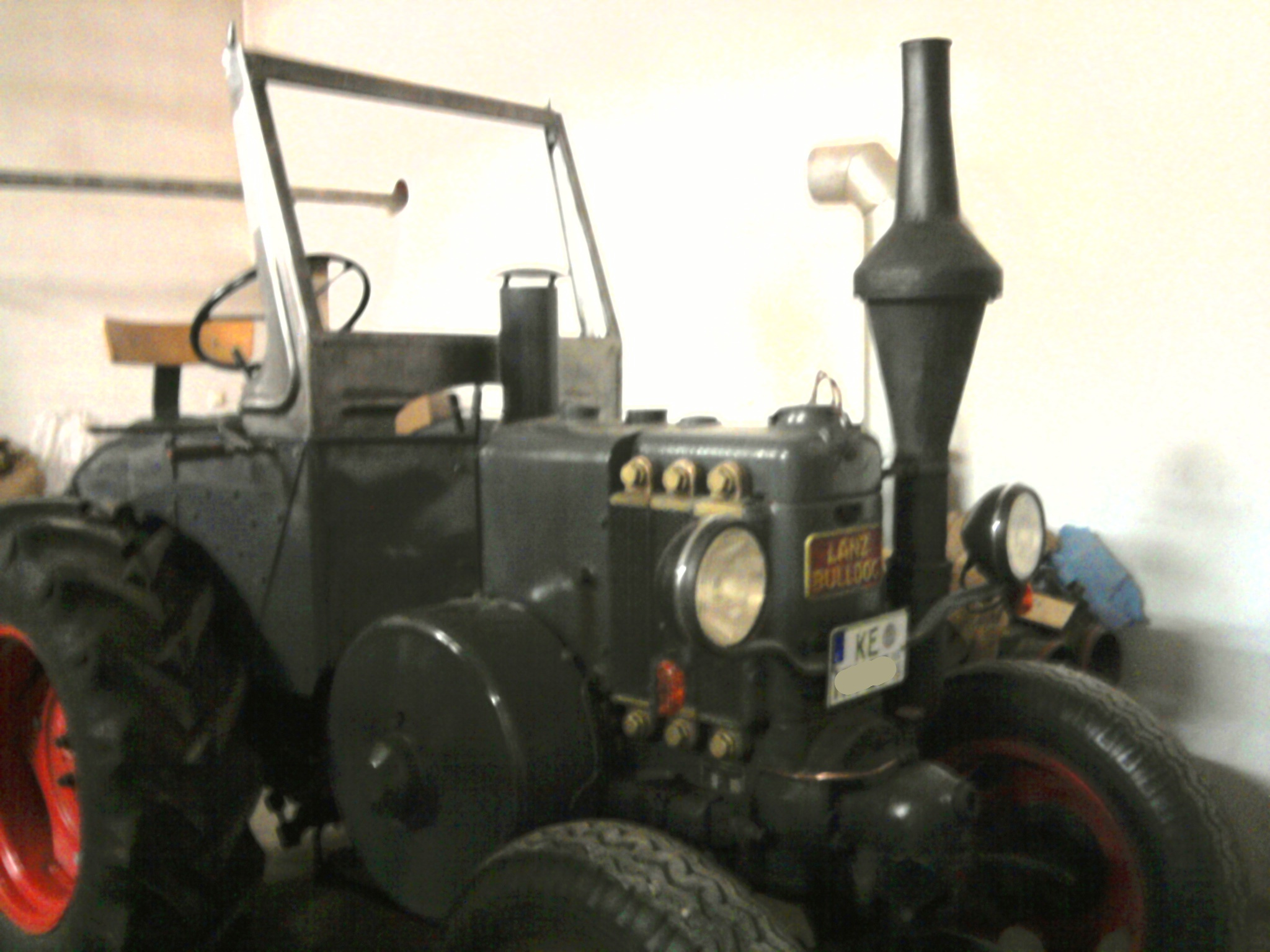 Was die Reifenkombination betrifft... Der Lanz hatte, als er zu uns kam, die Reifen auf dem Bild, welches ich hier angehängt habe. Auch wenn man´s auf dem Bild nicht sieht, hatten diese Reifen doch stärkere tiefe Risse und wurden umgeschlüsselt in die Reifen, die nun montiert sind. Die vorderen Reifen haben wir so groß, damit man leichter lenken kann.