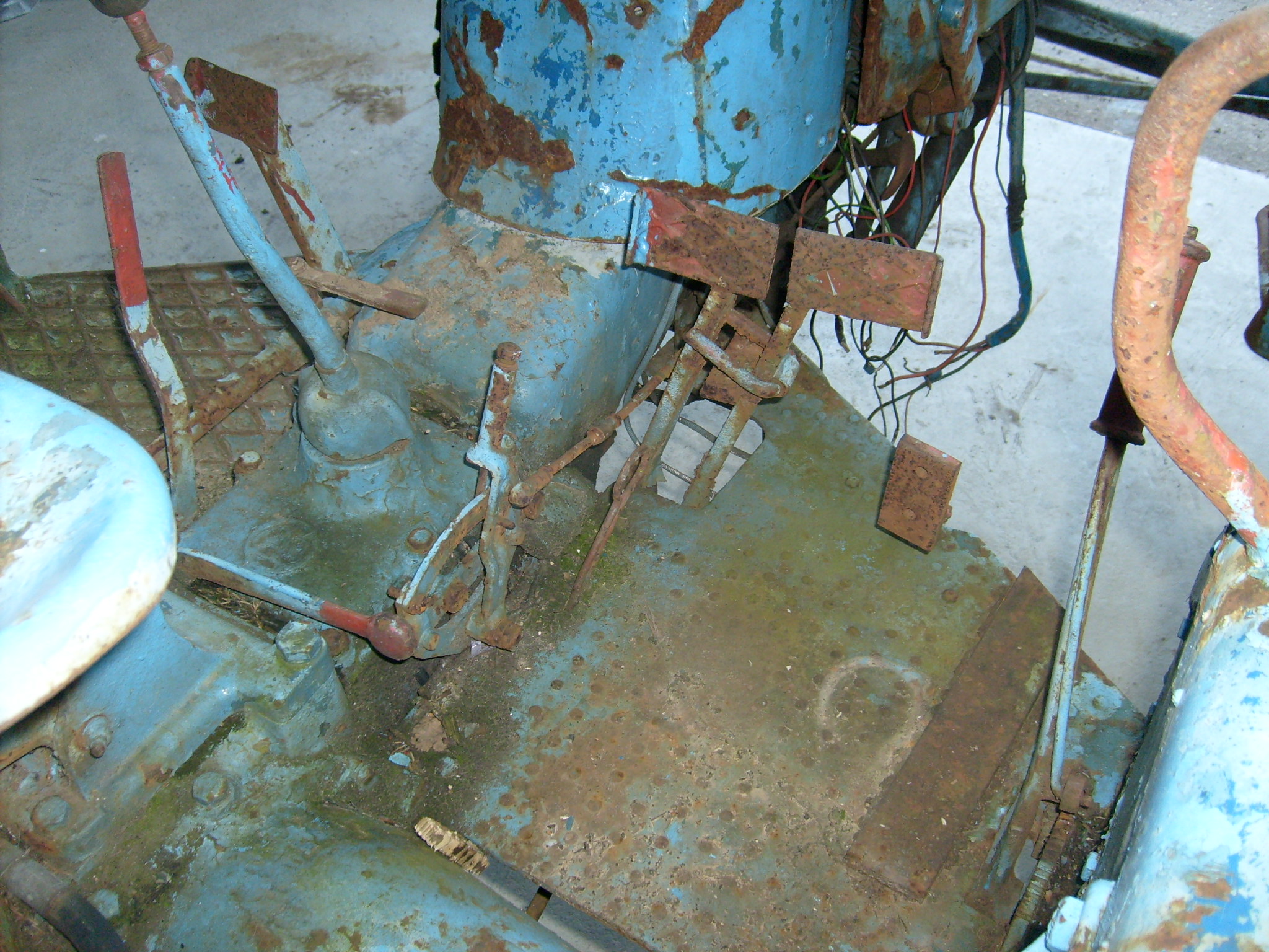 Hier mal ein Blick in den Fahrerstand. Die linke Bodenplatte ist das originale Gussteil. Rechts wurde Sie gegen eine genoppte Stahlplatte getauscht. Interessant auch die Ausführung des Handgashebels. Er ähnelt dem des Lanz Bulldog D1706. Die Serienausführung hatte einen vollkommen andersartig gestalteten Handgashebel im Armaturenträger. Anstatt der Rolle am Fußgashebel wurde ein Flachstahl angeschweißt. Ob das jetzt so schon ab Werk war weis ich noch nicht. Der Serien 13 er hatte das so wie die Volldiesel und Bulli/D1206 mit einer Rolle. Der Pilzförmige Schaltknauf mit Schaltschema liegt vermutlich auch irgendwo im Süddeutschen Wald. Das schöne oder besser gesagt praktische an der Sache ist aber, dass ich hier eigentich keine großen Mühen habe den Originalzustand wiederherzustellen. Das soll ja alles so bleiben wie es ist. Ich möchte das bei Ausstellungen aber auf jeden Fall anhand von Vergleichsfotos dokumentieren, wie das ab Werk eigentlich ausgeführt war und das dann auch anhand von Detailbildern eines Serien D1306 Tragschleppers vergleichen. Dann kann man schön die baulichen Veränderungen zwischen Prototyp und Serien 13 er erkennen.