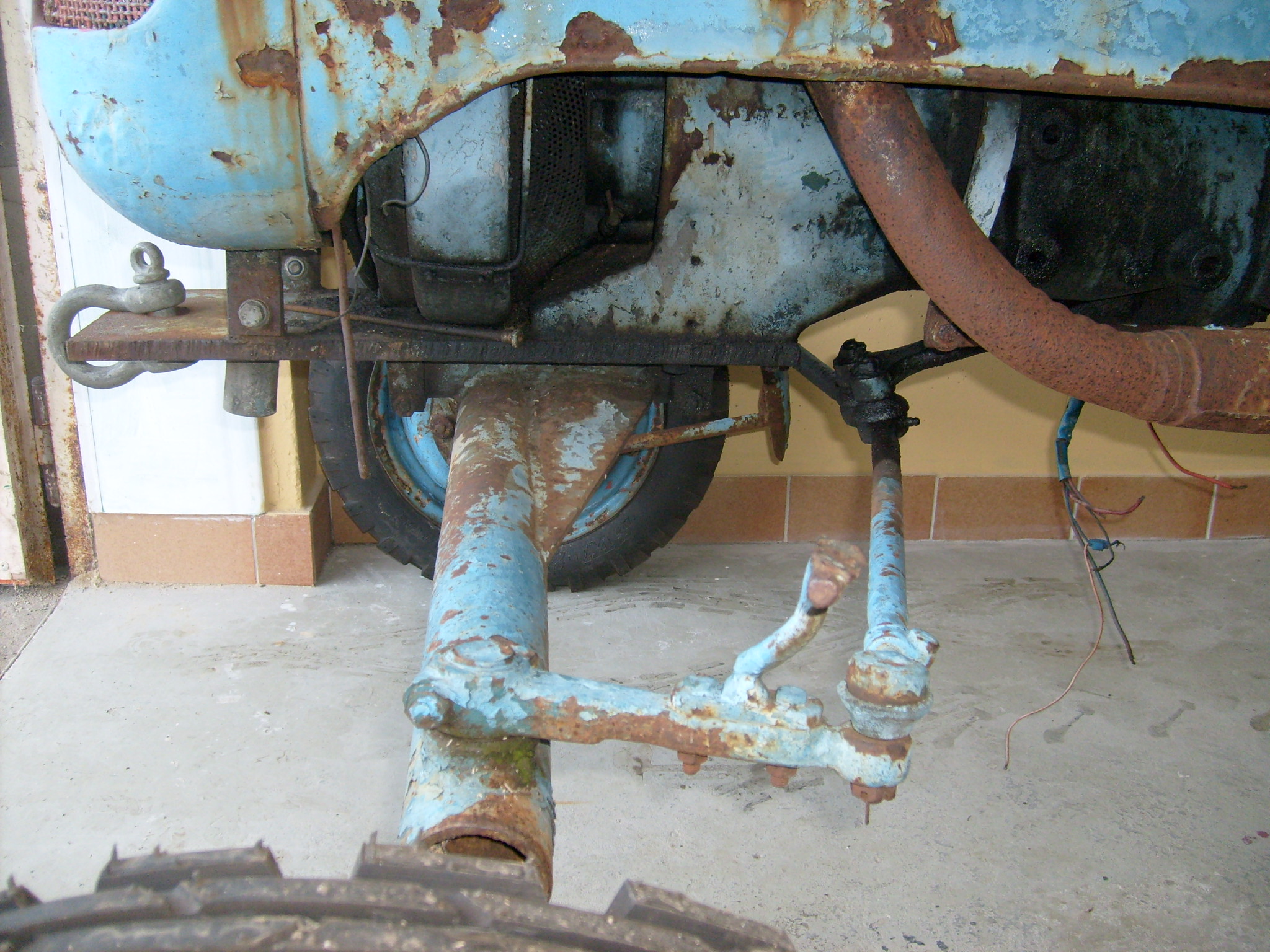 Die original Gussvorderachsaufnahme hat der Vorbesitzer beim Holzrücken im Wald "verloren". Sie wurde durch eine Stahlplatte ersetzt. Möglicherweise ist das der Grund, warum der Schlepper 1983 eine 6km/h Betriebserlaubnis erhielt, weil ein Fahren mit 18 km/h so zu gefährlich ist?