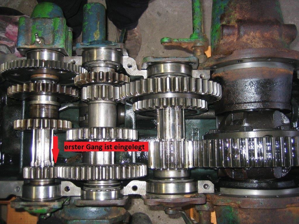 Zum einfahren in die Garage legte ich bei meinem Volldiesel 2416 Bj. 1956 den Rückwärtsgang ein. Nach dem loslassen der Kupplung stieg mein Lanz jedoch vorne auf, ich trat sofort die Kupplung um nicht umzustürzen. Leider kann ich aufgrund des Schreckens nicht mehr sagen, ob ich den Rückwärtsgang noch rausgemacht habe oder nicht und einen Vorwärtsgang einlegte. Jetzt ist jedenfalls ein Vorwärtsgang drinnen und der geht nicht mehr heraus. Das Getriebe lässt sich nicht mehr schalten. Die Kupplung ist in Ordnung, den ich konnte meinen Lanz mit getretener Kupplung in die Garage schieben.