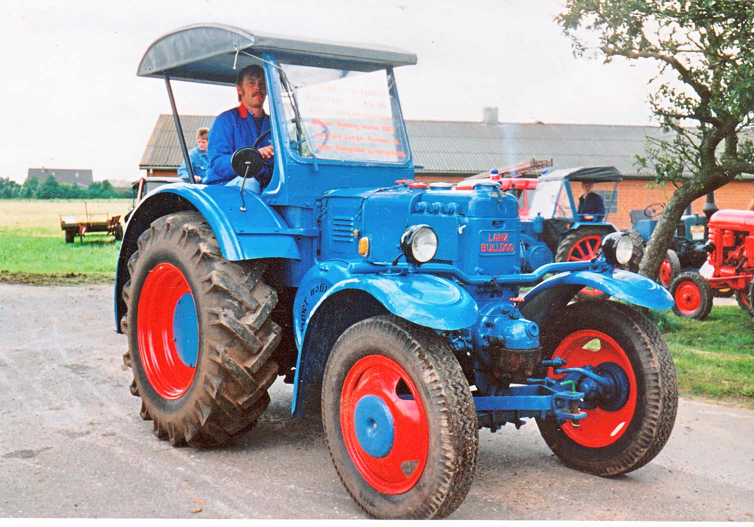 Rengelrode/Bernterode b.H.. Es ist ein 1937 gebauter Bulldog Lanz vom Typ HN3, ein Zylinder waagerecht, 4700 Kubikzentimeter, 25 PS, ursprünglich eisenbereift. Der Hersteller in Mannheim nannte die Schlepper bis 1937 noch Bulldog Lanz, ab Ende dieses Jahres Lanz Bulldog. Mario stellt die mit Benzin betriebene Heizlampe unter die Glühnase, den Zylinderkopf. Nach 15 Minuten betätigt sich sein Vater mit einem Handrad als Anlasser. Gemächlich legt der Zweitakter los, mit seinem im Schornstein angenehm verstärkten "Tuck, tuck, tuck".