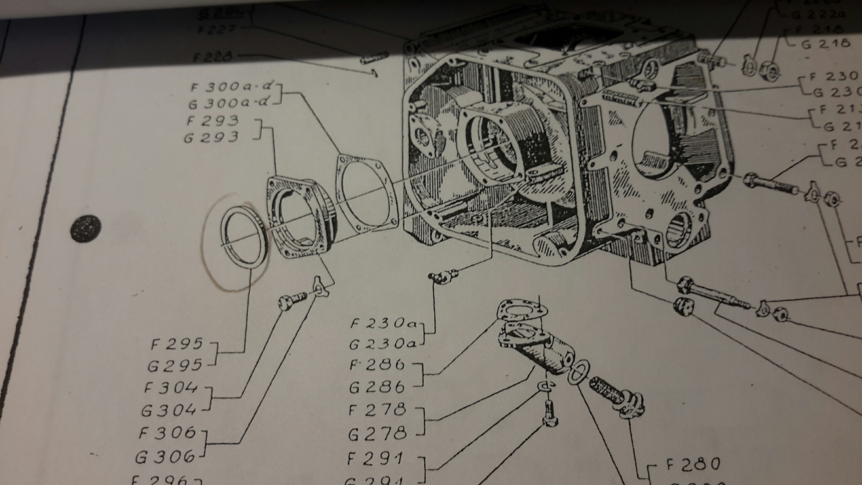 In meiner Liste vom November 1958 ist der Stützring F522 nur in der Teileliste links angegeben, aber auf der Zeichnung finde ich den nicht. Die Motoren waren ursprünglich ausgerüstet mit Wellendichtringen in Fahrtrichtung links und rechts (65x86x10), ohne Stützring. Der Stützring F522 für diese Wellendichtringe F520 und der Ring F517 wurde separat montiert, aber nur bis zur Fahrgestellnummer 558 382.
