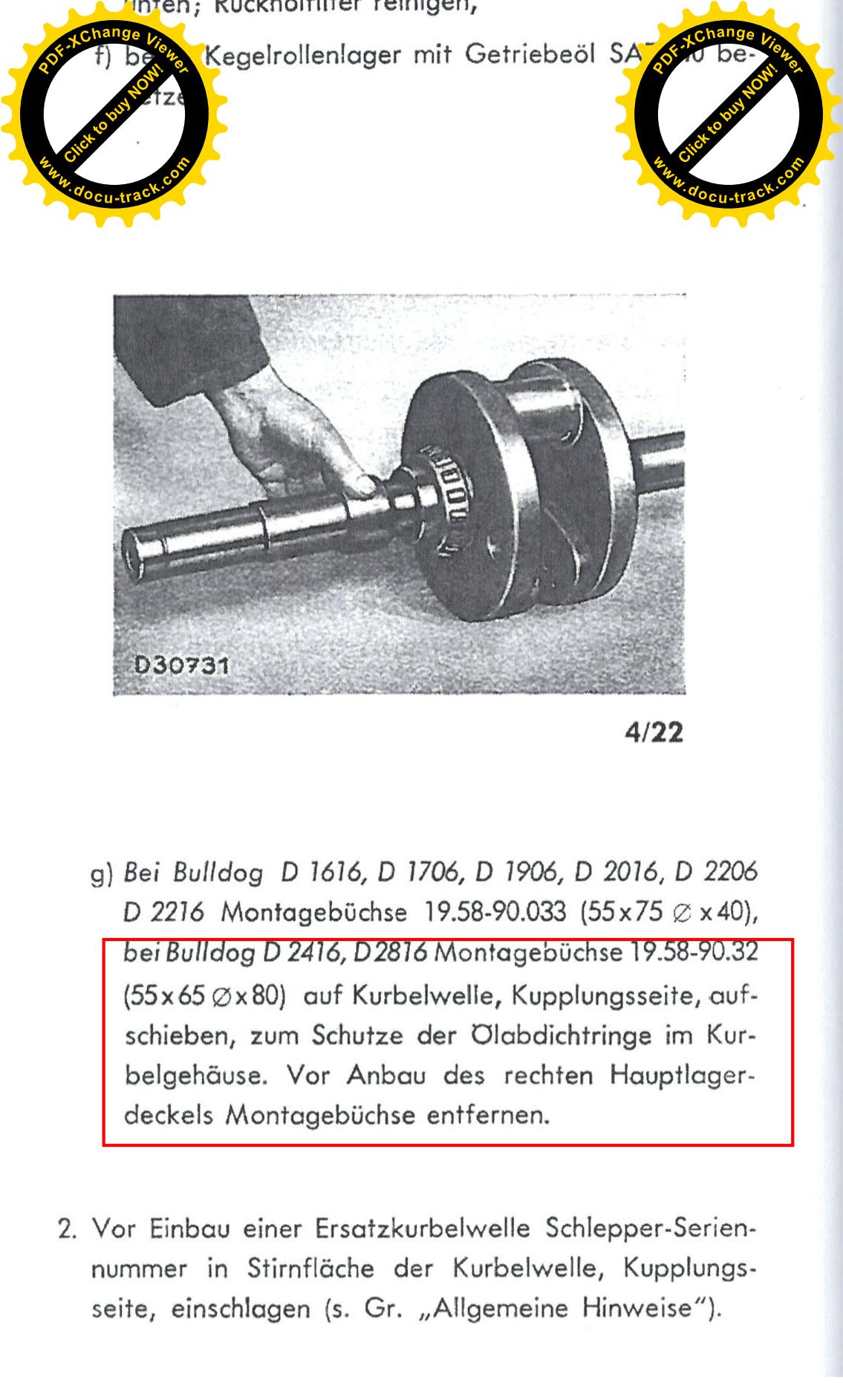 Du schiebst die Kurbelwelle mit der Büchse durch den Simmering in das Kegelrollenlager hinein und durch die Büchse bleibt die dichtlippe nicht an der Kante hängen. Nach Einbau der Kurbelwelle sitzt die Büchse frei neben dem Zwischenrad. Anschließend kannst du die abziehen und auf der Reglerseite verwenden.
