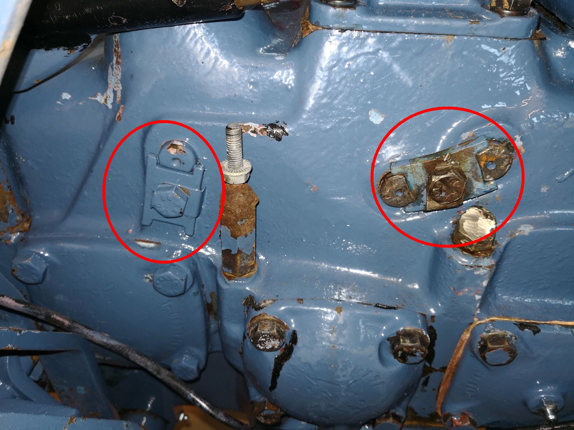 am Getriebegehäuse rechts sind 2 Verschraubungen erkennbar. Leider ist