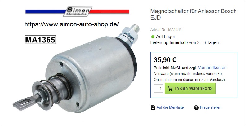 Auf meinem Bild findest Du auch die Adresse von Simon und den richtigen Einzug-Magnetschalter für Deinen Starter.