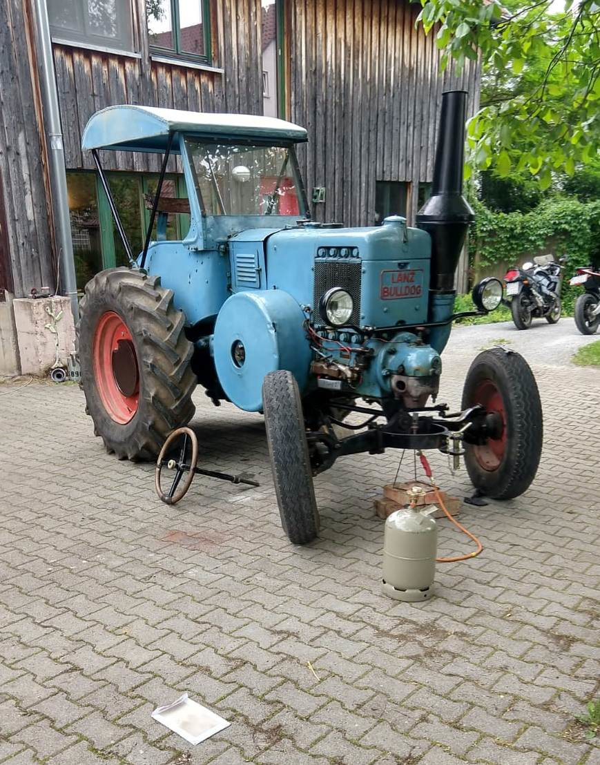 Was ich mir so zusammengereimt habe bisher: der Lanz müsste aus der 800x oder 850x Reihe sein, mit 35 PS. Baujahr ist vom hörensagen eventuell 37, jedoch definitiv Vorkrieg (z.B. noch großer Schlüsselschaltkasten, ...).
