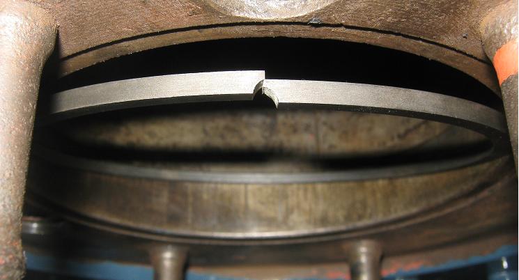 Der alte Kolbenring hatte ein Stoßmaß an der verschlissenen Stelle im Zylinder von ~1,9 mm. Im Werkstatthandbuch wird dazu geraten, ab einer Stoßkante von 2mm die Ringe zu erneuern.