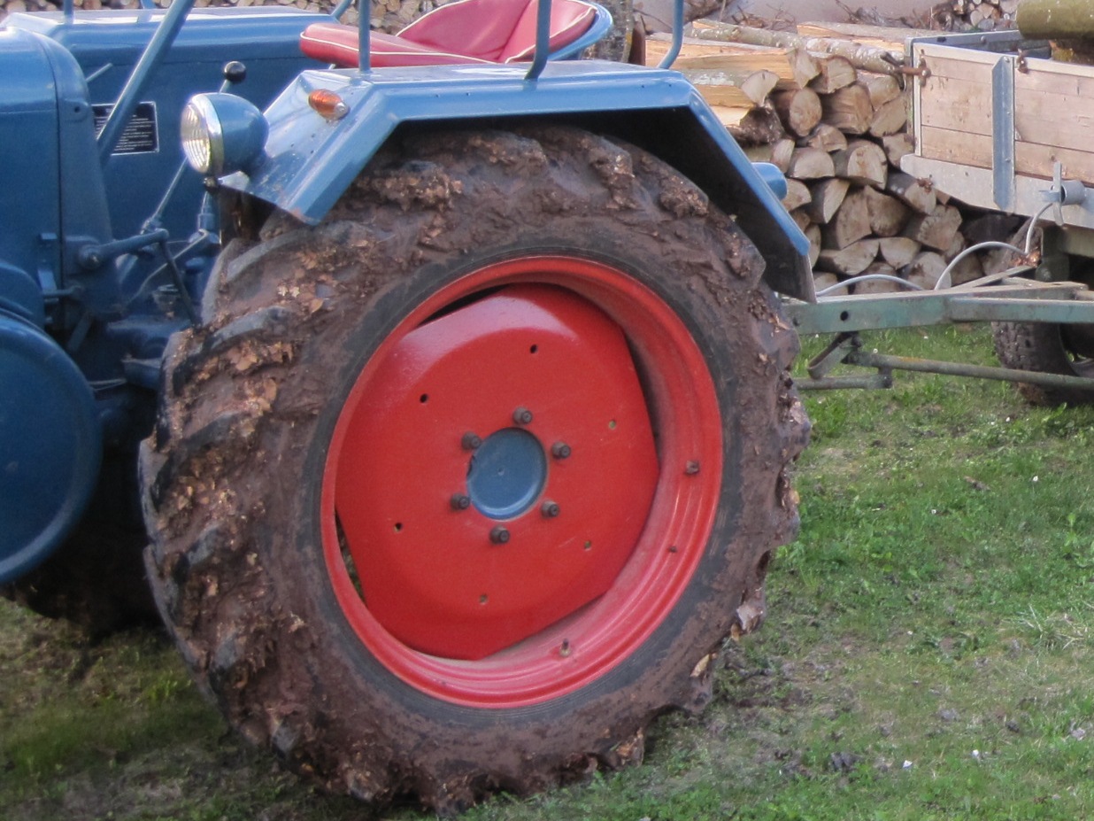 Siehe Bild unten, da wurde dem Holz eine Abfuhr erteilt. Dabei hat sich der Lanz bis zur Felge eingegraben.