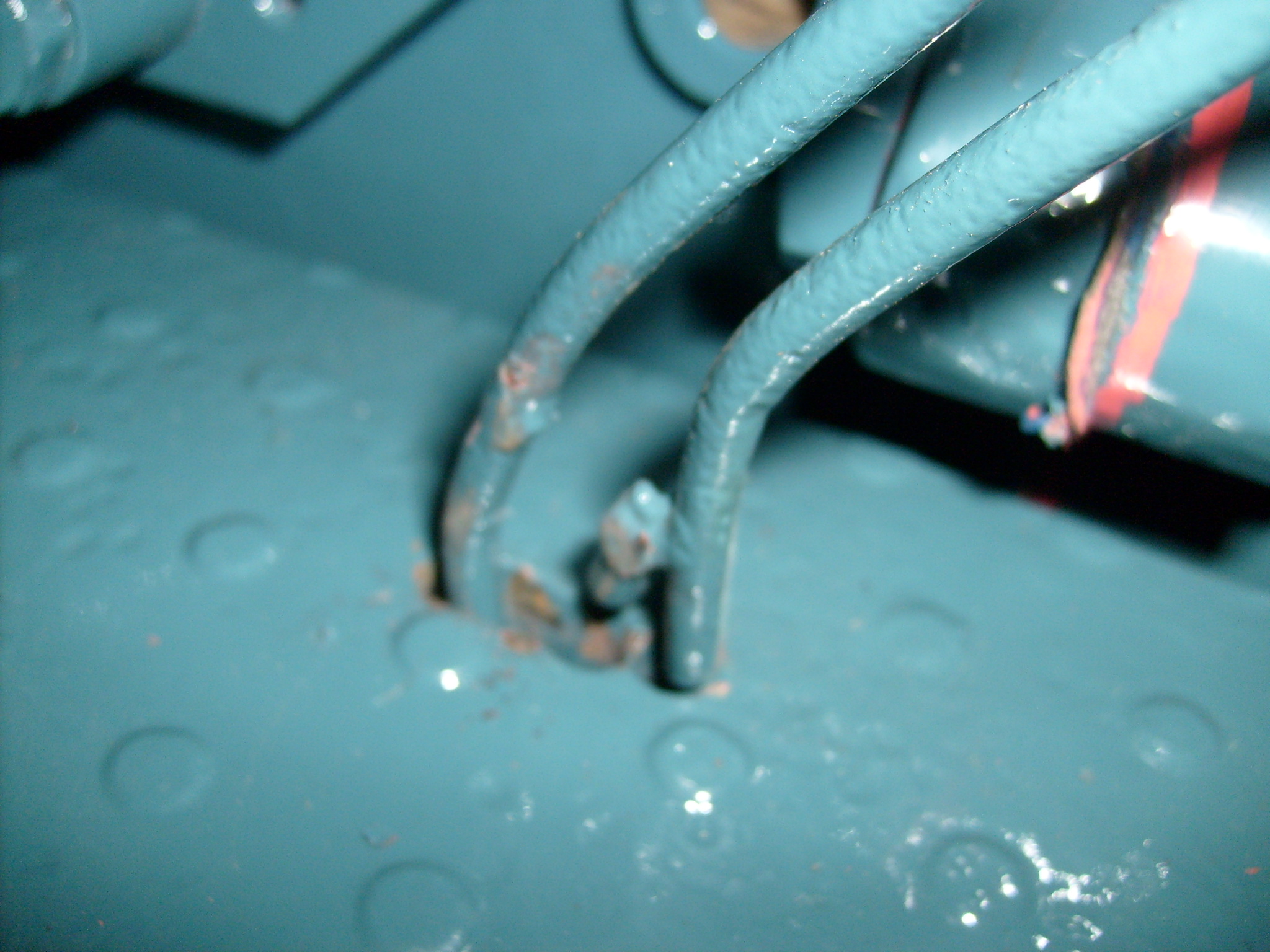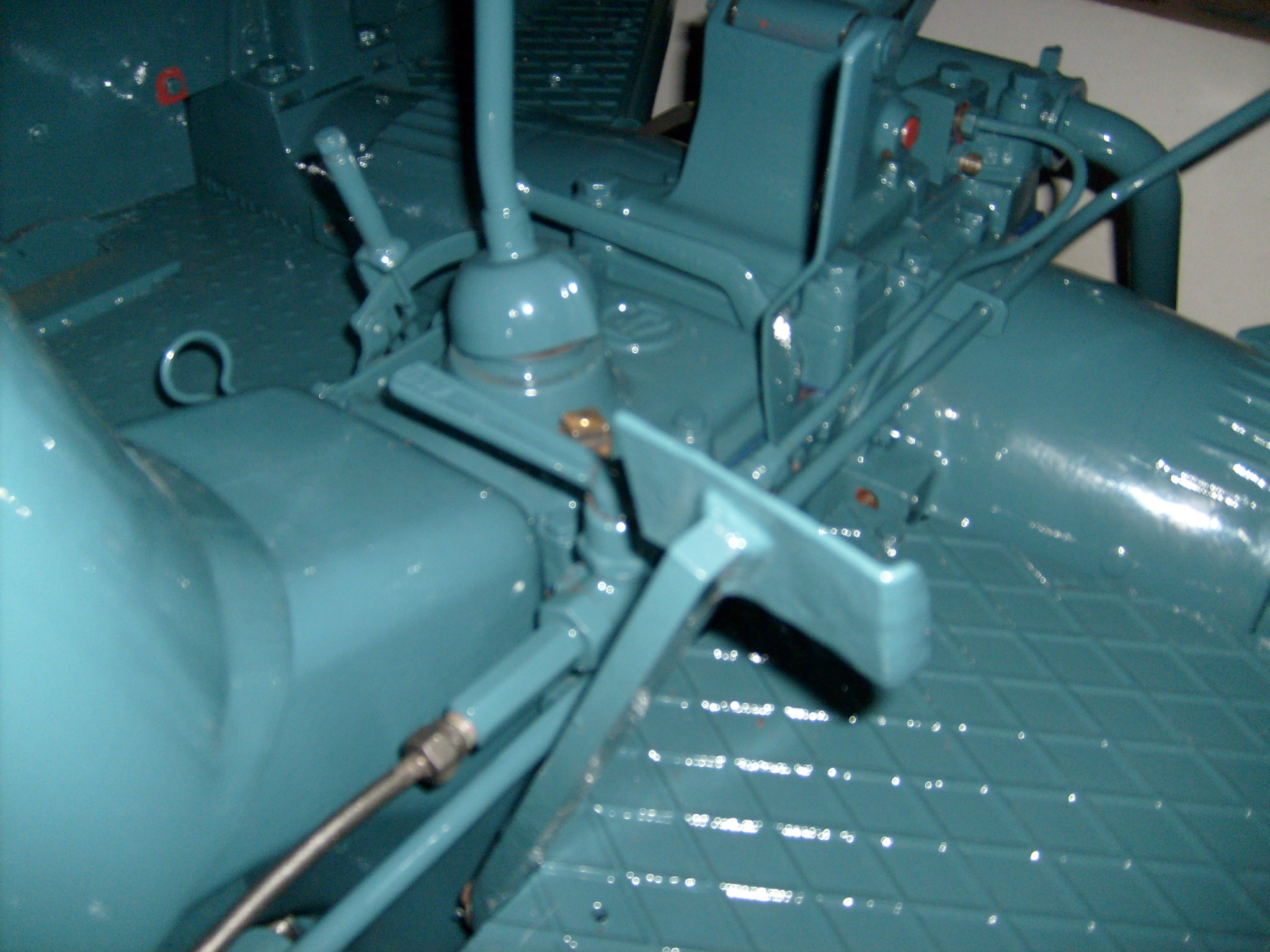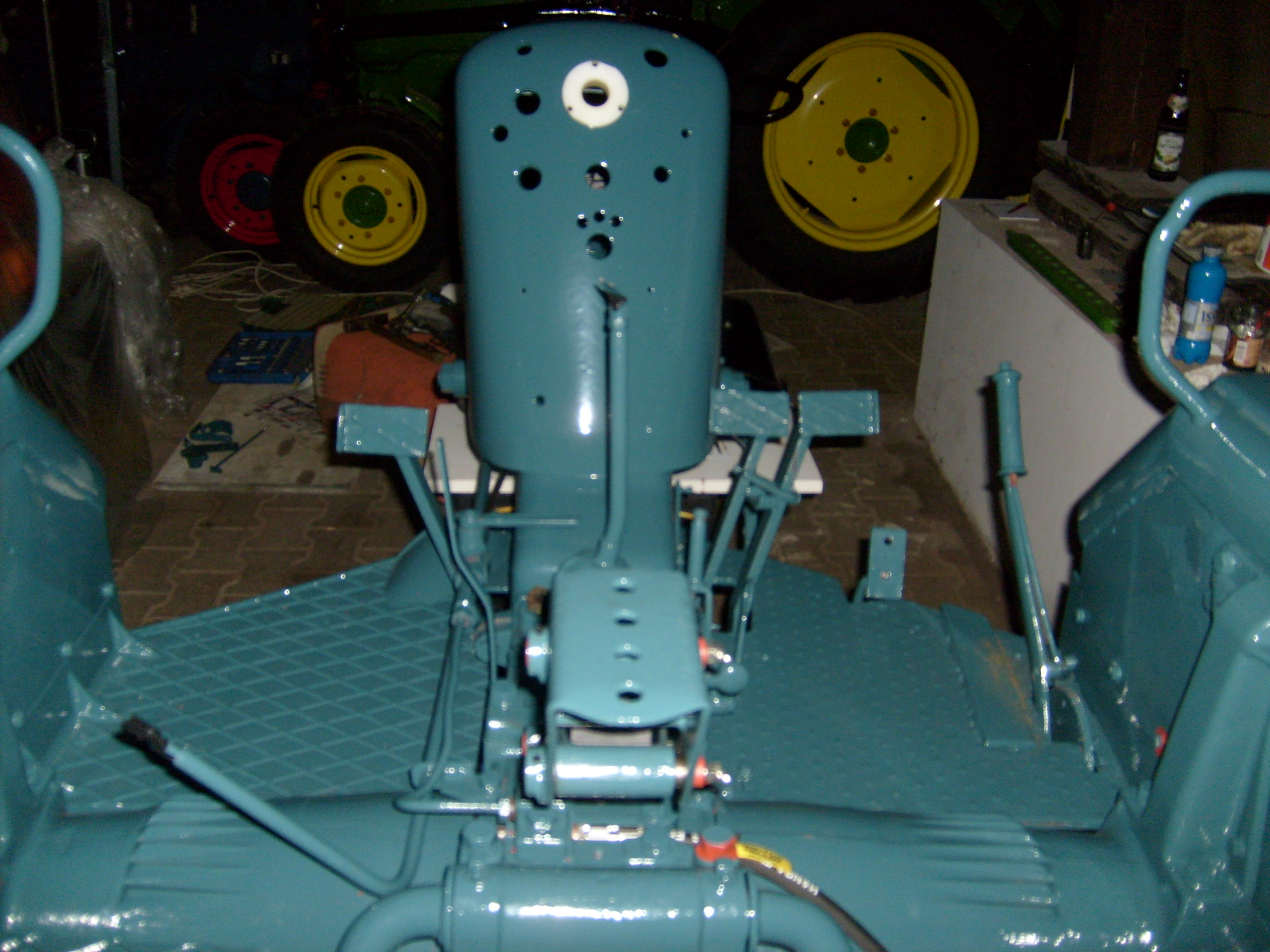 Nach dem blau lackieren der Schraubenteile konnte die Hydraulikleitung zwischen Pumpe und Verteiler im Heck des Schleppers montiert werden. Der Prototyp verfügt hier über einen zusätzlichen Absperrhahn.
