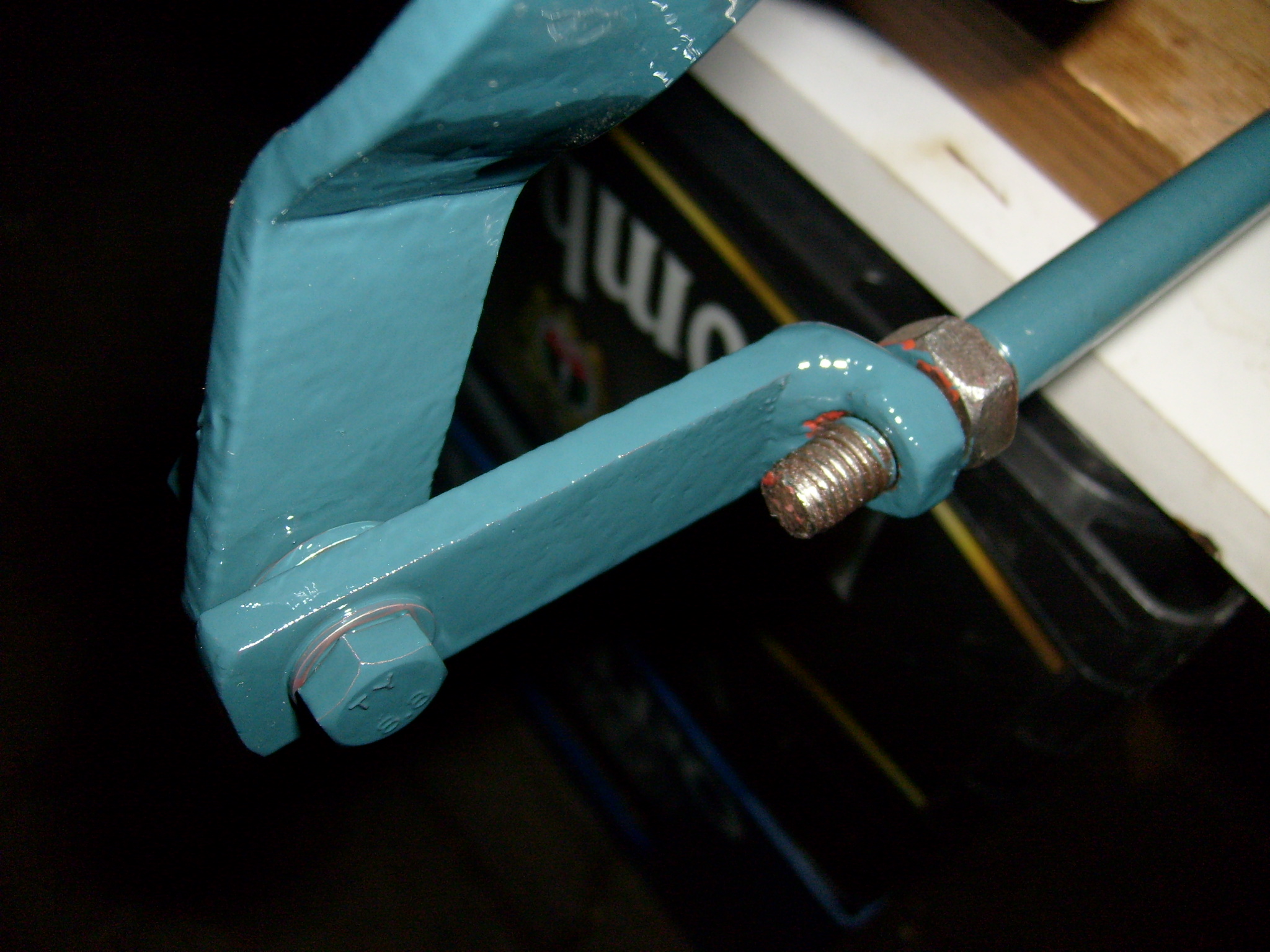 Beim grundieren noch blanker Metallteile nach der Montage wurden natürlich auch die Bolzen des Sitzgestelles nicht vergessen. Das ist nichts für nervöse Menschen oder Diejenigen, die über eine zitrrige Hand verfügen. Rauchern wird eine Kippe vorher empfohlen. :wink: