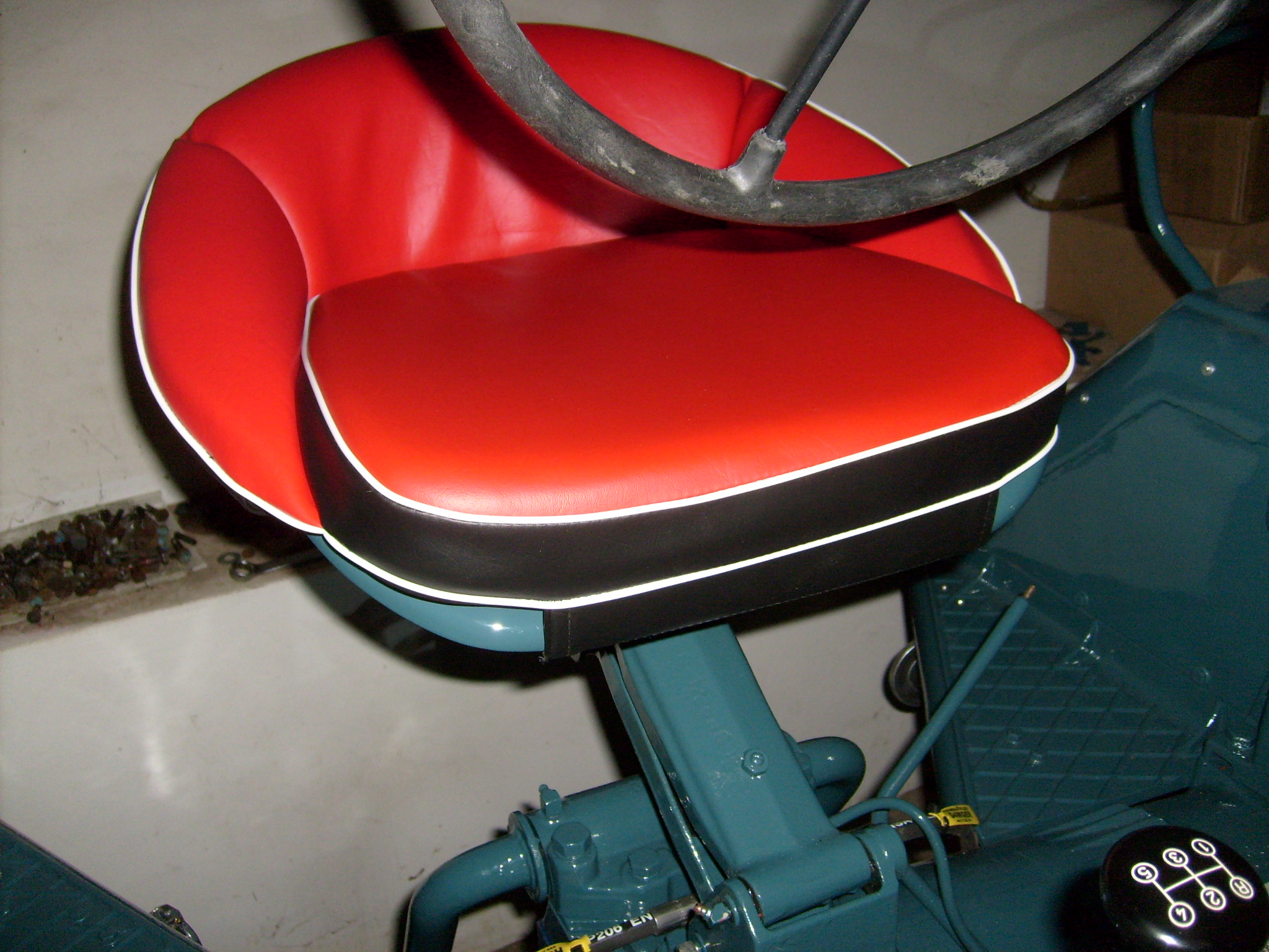 Schaltknauf und Sitzkissen wurden auch schon mal angebracht. Das Sitzkissen ist original Ausführung Lanz bei Maschinen von 1957. Oberteil rot, Unterteil schwarz, Keder weiß. Passt eigentlich nicht zum Proto, hatte ich aber noch liegen und das andere schwarze Kissen das eigentlich auf den Proto gehört passt irgendwie doch nicht so gut wie ich mir das gewünscht habe.Also von der Form her... Na ja, egal, sieht so auch gut aus. Vielleicht finde ich nochmal ein passendes Kissen wie im Original. Hat man wenigstens mal wieder Antrieb auf Teilemärkten rumzuschlurfen... :lol:
