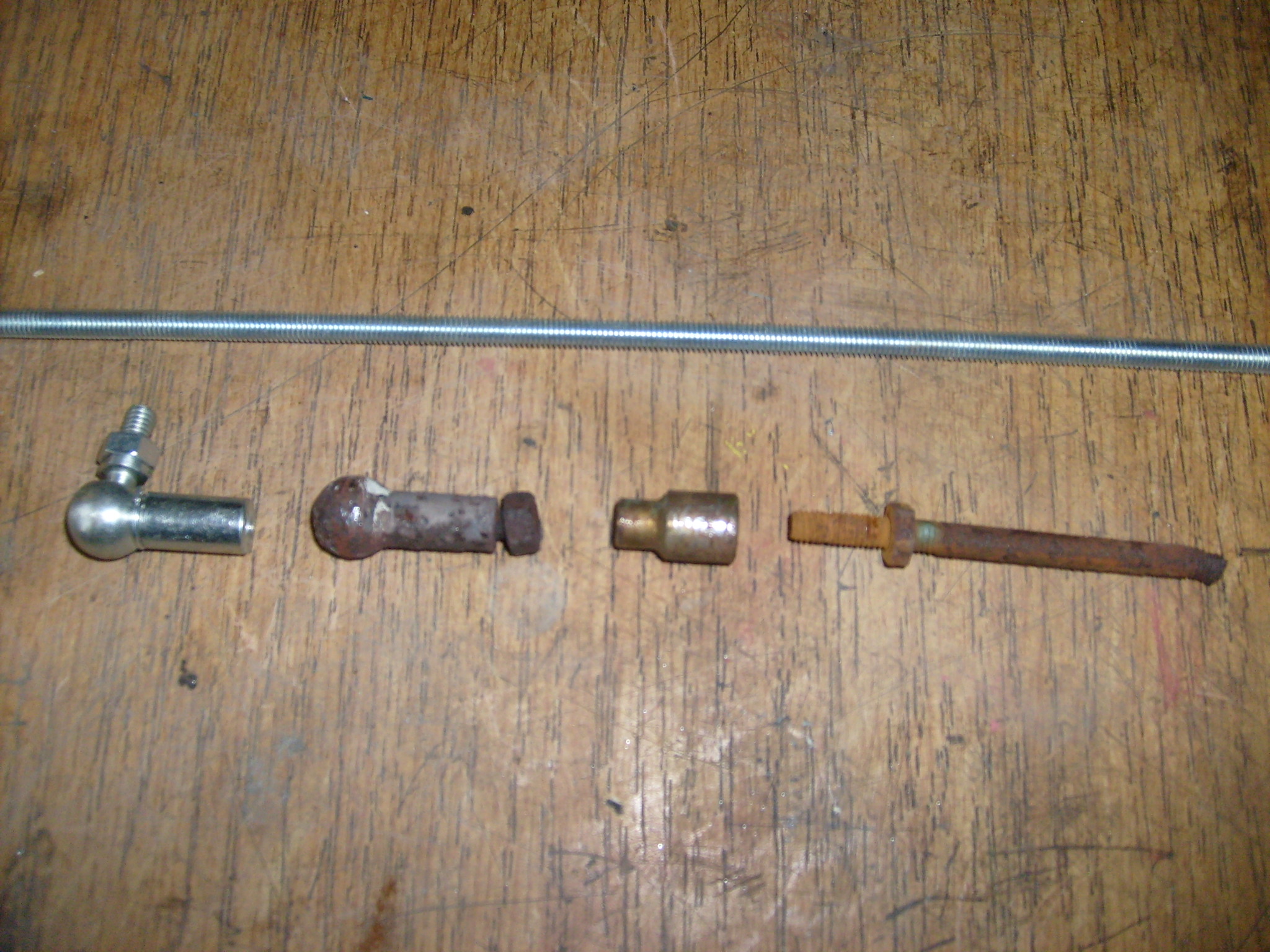 Die Einzelteile mal zusammengelegt, aus denen ein neues Gestänge werden soll. Selbstverständlich bleibt die Nuss dabei erhalten. :) Die alten rostigen Teile dienen nur dem Vergleich vorher, nachher...