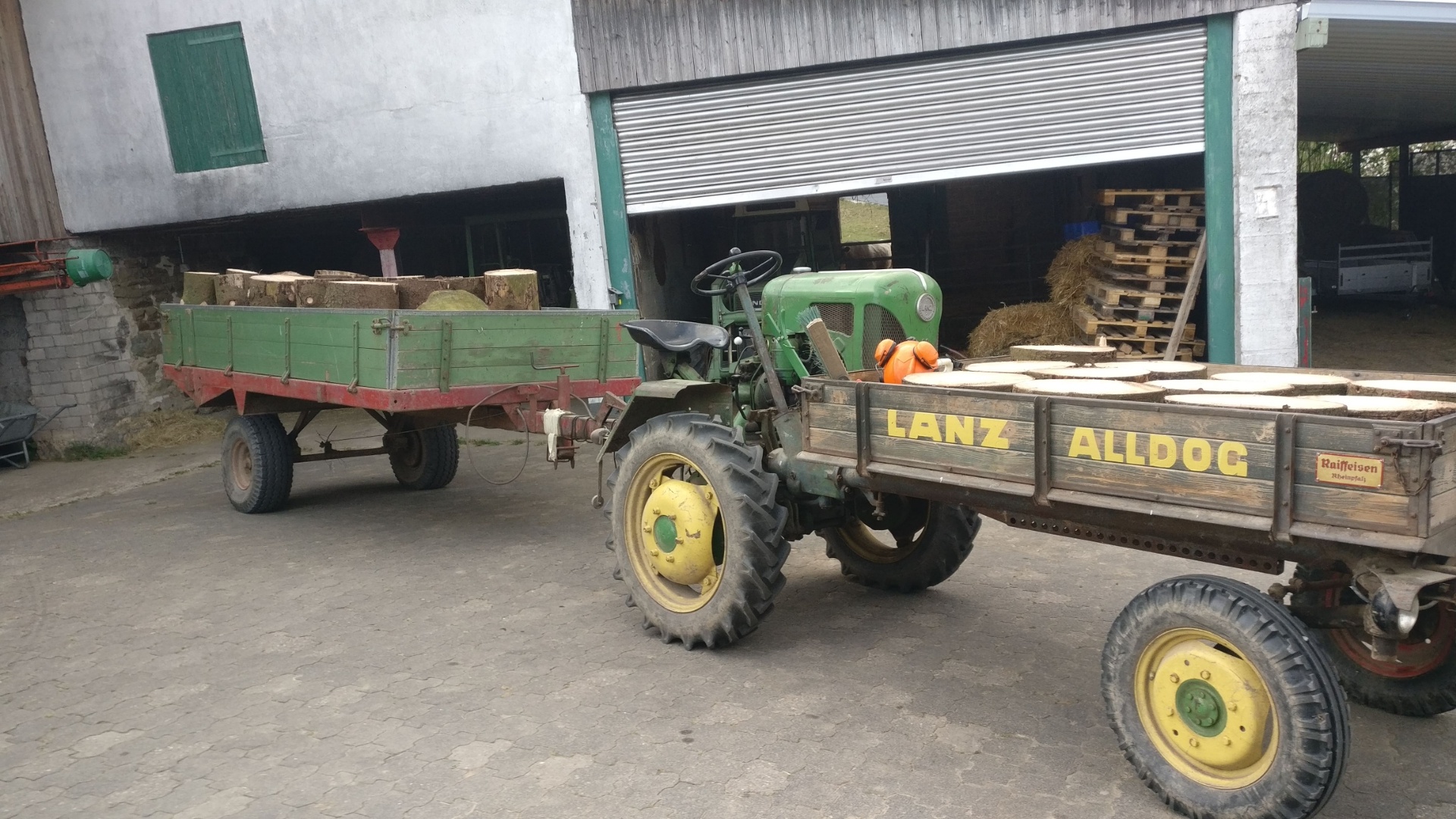 Hallo zusammen, ich bin neu im Forum und möchte mich kurz vorstellen. Ich bewirtschafte mit meiner Familie im schönen, bergischen Land eine kleine Landwirtschaft mit 15 Charolais Rindern im Nebenerwerb. Seit ca einem Jahr besitze ich nun meinen Wunschtraktor, einen Lanz Alldog 1806. Er ist fast täglich auf dem ganzen Hof und ausserhalb im Einsatz. Um das Einsatzspektrum zu erhöhen, bin ich ständig auf der Suche nach Anbaugeräten für die Grünlandwirtschaft sowie den Ackerbau. Aber auch alle anderen Geräte interessieren mich. Mittlerweile habe ich bereits eine Isaria Sähmaschine, einen Grubber, Gitterräder für hinten, Rahmengewichte, einen Rübenhackgerät und ein nicht ganz vollständiges Mähwerk ergattern können. Ein Teil der Geräte hat sich schon im aktiven Einsatz bewährt. Vielleicht hat ja noch jemand andere Anbaugeräte oder Teile für den 1806. Beim Mähwerk fehlt mir zb. der Aussenschuh und die originale Zapfwelle. Für die Rübenhacke fehlt mir noch der passende Anbaurahmen samt Aushebung für den Zwischenachsanbau. Vielleicht hat ja jemand in der Richtung was zu veräußern. Falls ja, kann er sich gerne mal melden.