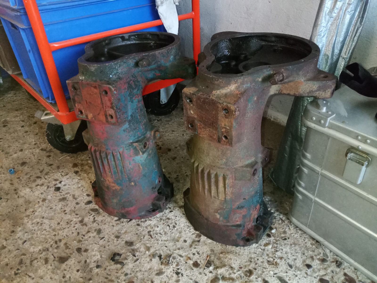 Sonst bin ich fleißig am Sandstrahlen, Reinigen und Grundieren der ganzen Einzelteile vom Getriebe um diese zeitnah wieder zusammenzubauen.