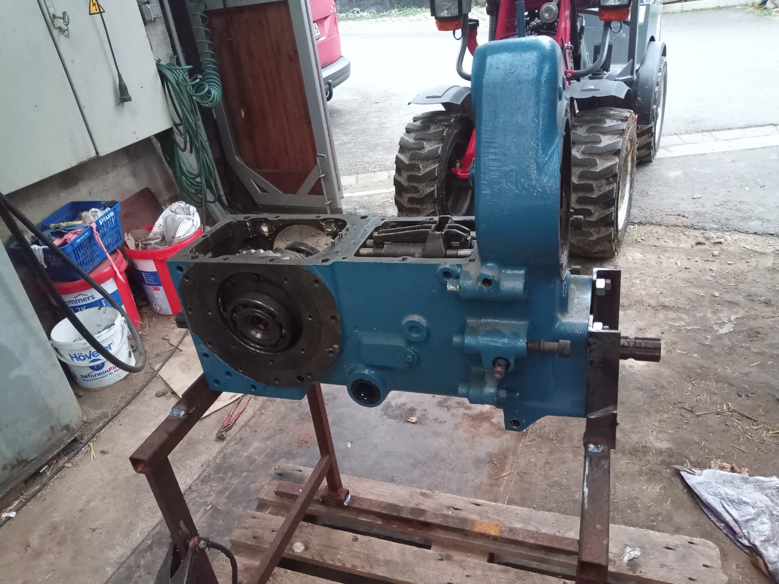nach längerer Zeit habe ich nun mein Getriebe mit Zwischengetriebe, Hydraulikpumpe und Kupplungsglocke fertig montiert, alle Dichtungen sind neu und das Öl bleibt zum Glück im Getriebe und sucht sich keinen Ausweg nach draußen ;)