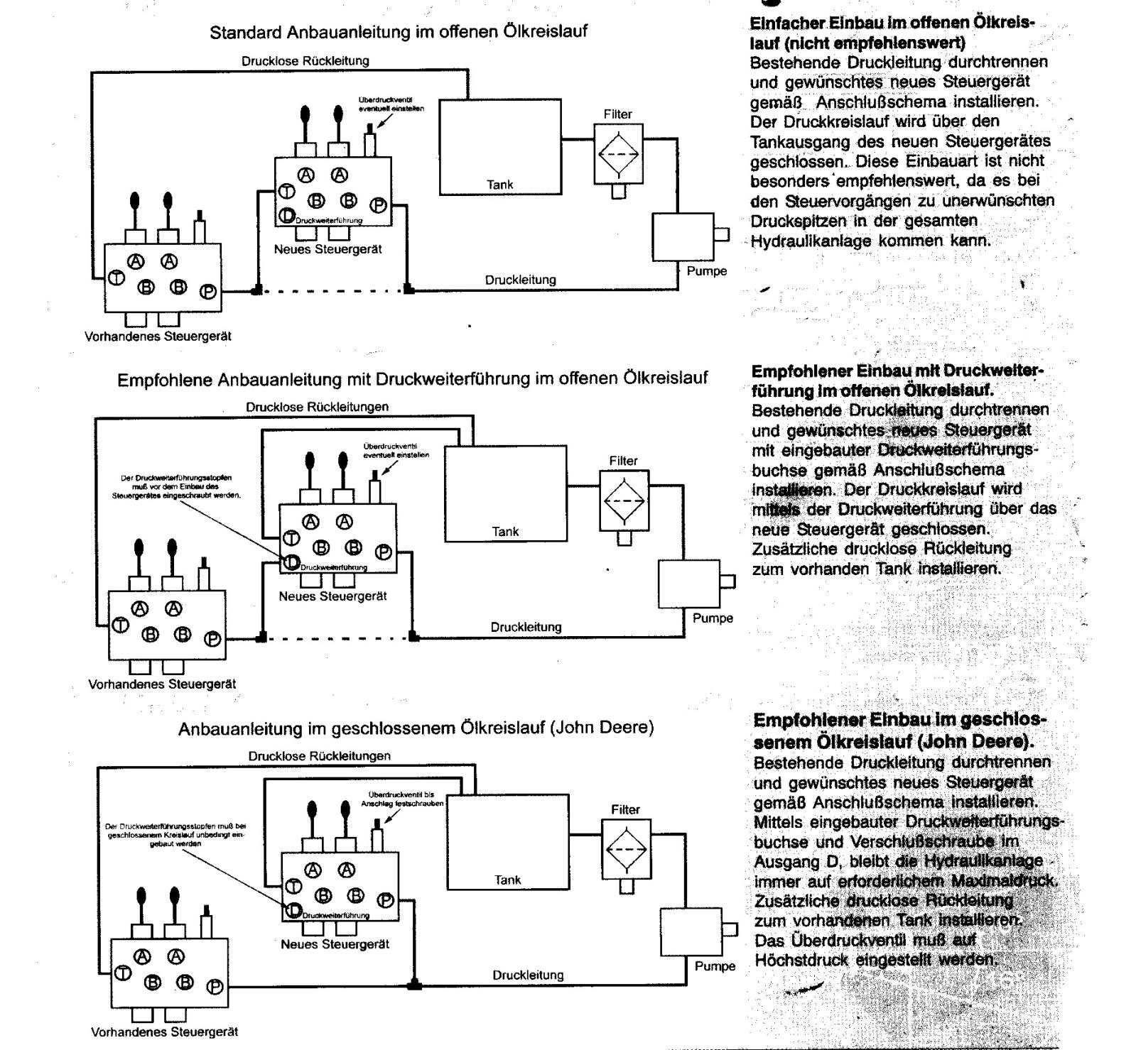 Bei solch einem Steuergerät ist auch ein zusätzlicher Rücklauf in den Tank erforderlich!