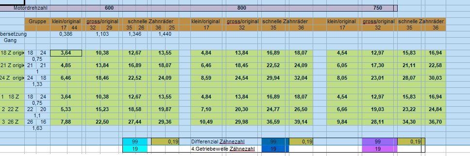 Könntest du denn, natürlich nur wenn du Lust hast, Mal die 35er und 36er Gruppe mit 18.4-30 rechnen, dann aber mit den etwas kürzeren 2.+3. Gang, also original Welle nur andere Zahnräder?