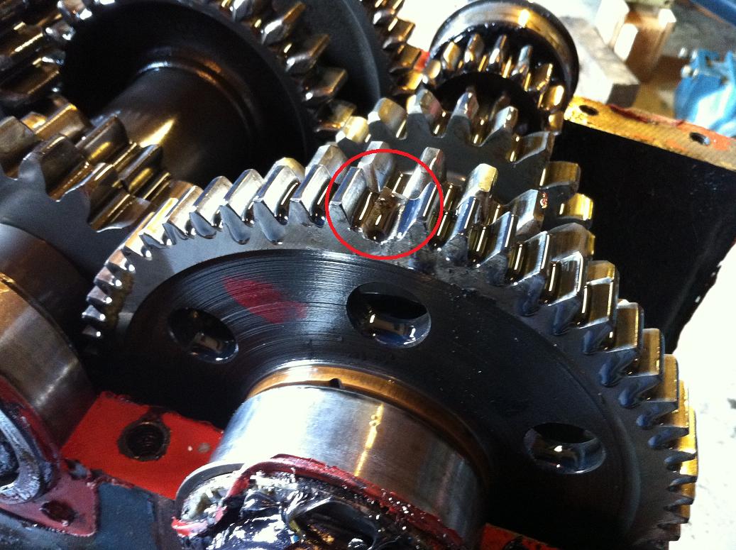 Habe mich dann sofort mit meinem Vater auf Fehlersuche begeben und festgestellt dass sowohl vom Zwischenrad sowie vom Gegenrad auf der 1. Welle jeweils ein Zahn fehlt.