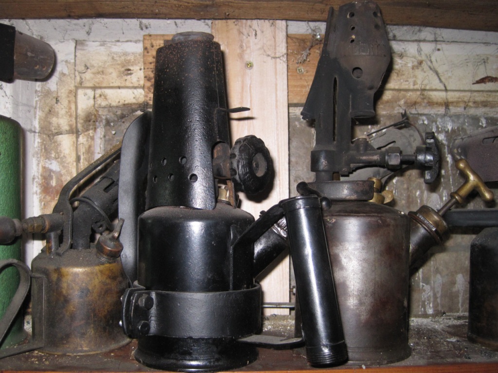 Die linke Heizlampe ist auch noch im originalen Zustand und stand viele Jahrzehnte in einer Schmiede. Merkwürdigerweise ist diese noch ein bisschen kleiner und hat eine etwas rundere Form als die zum Bulldog gehörende Lampe.