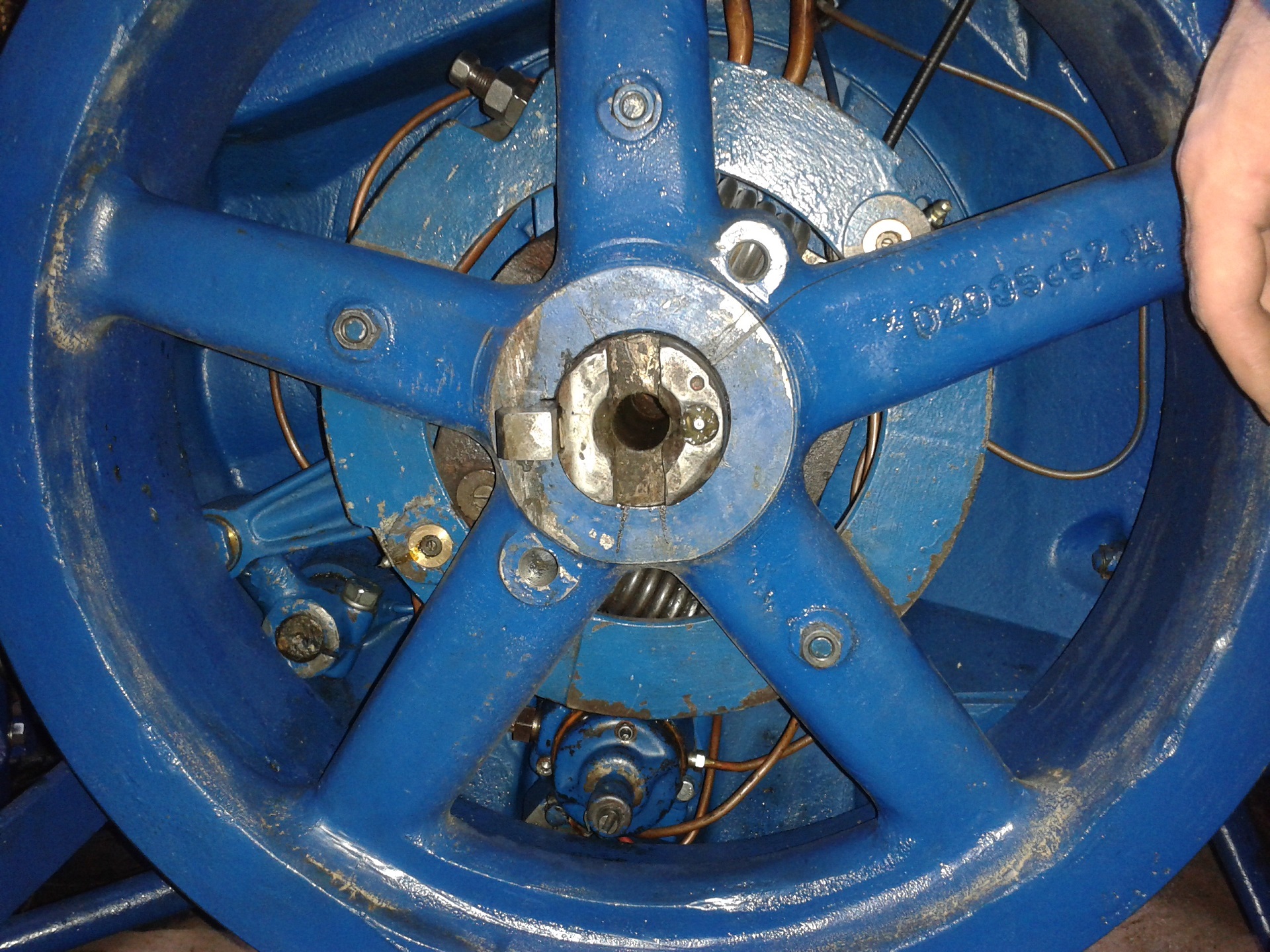 altes Schwungrad (steht leider auf dem Foto nicht exakt so wie das andere) Ich werde nochmal nen besseres Foto machen.