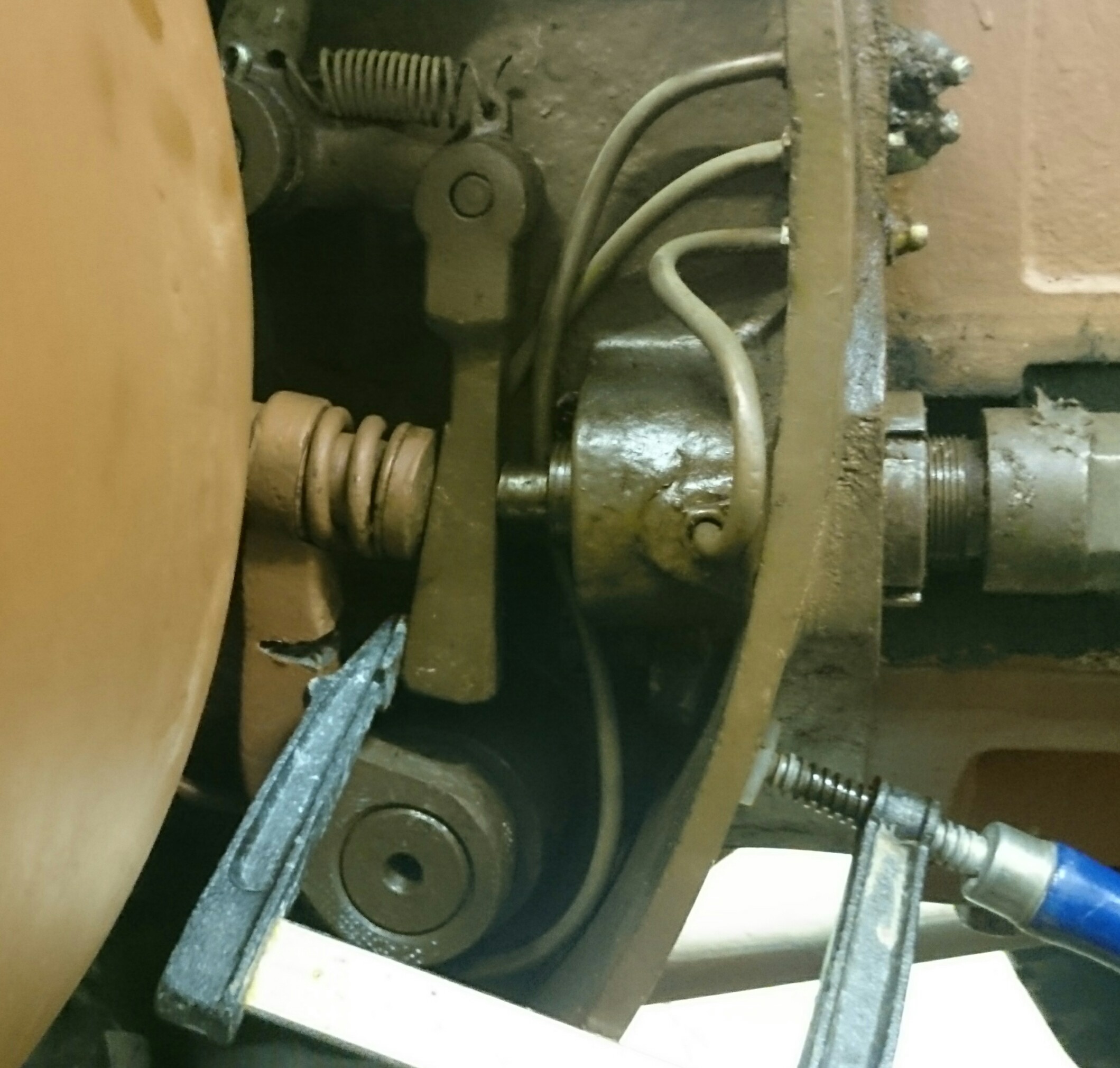 Wo die Rückzugfeder am Gestängekreuz eingehängt ist scheint kaum noch Material vorhanden,sodaß diese Bohrung wohl bald ausreißt.