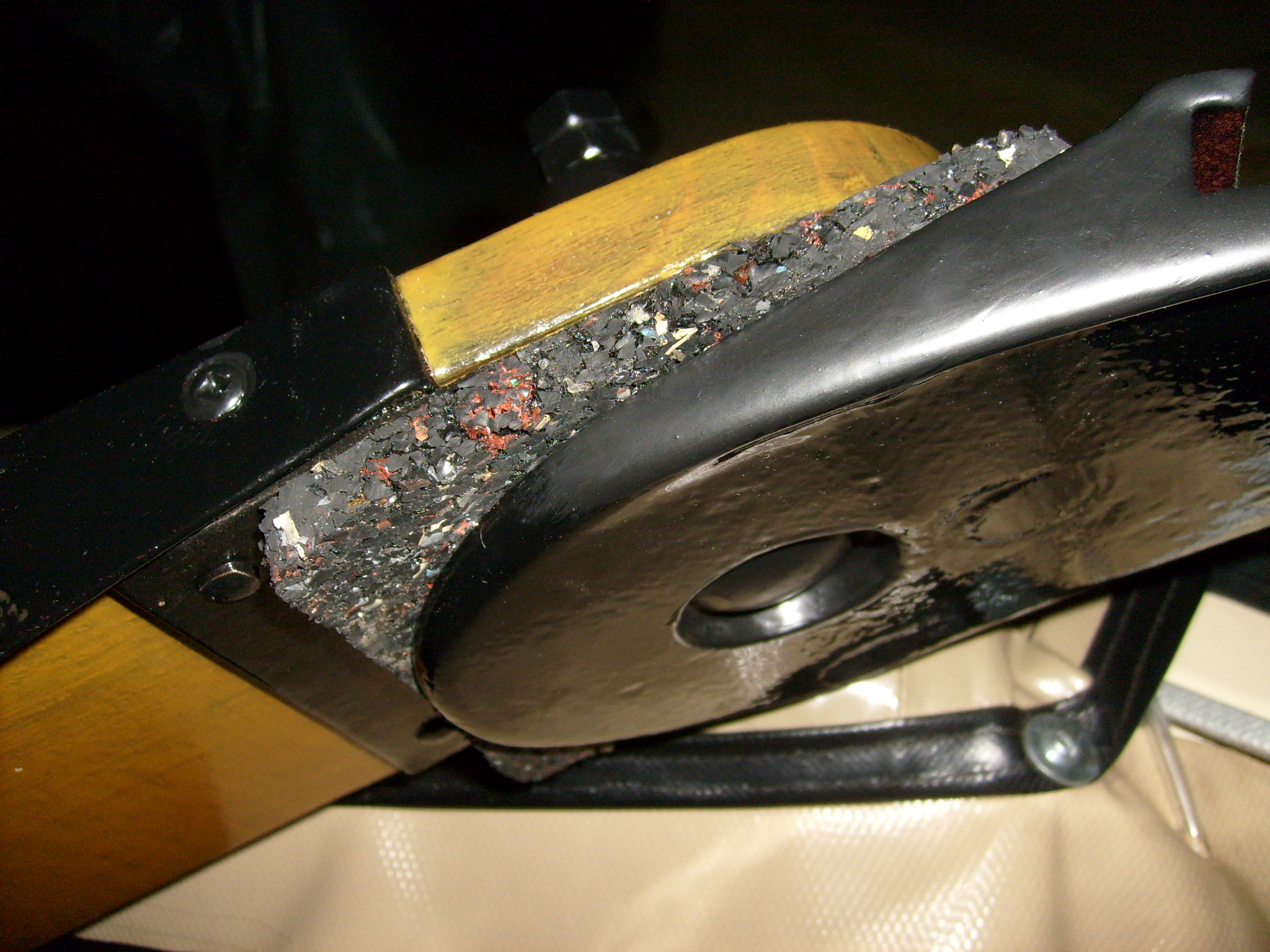 Ein optisches Highlight am Mähwerk bildet natürlich das in Holzoptik belassene Schwadbrett. Die wesentlichen Befestigungsteile des Brettes am äußeren Schuh wurden "natürlich" wieder im Laufe der Jahre "verschlammpt"