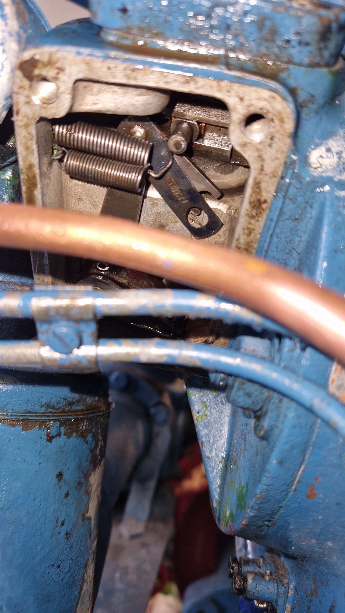 Vorsicht, darunter sitzt eine Druckfeder, sie darf nicht verloren gehen! Auffangbehälter und Pappen unter stellen.